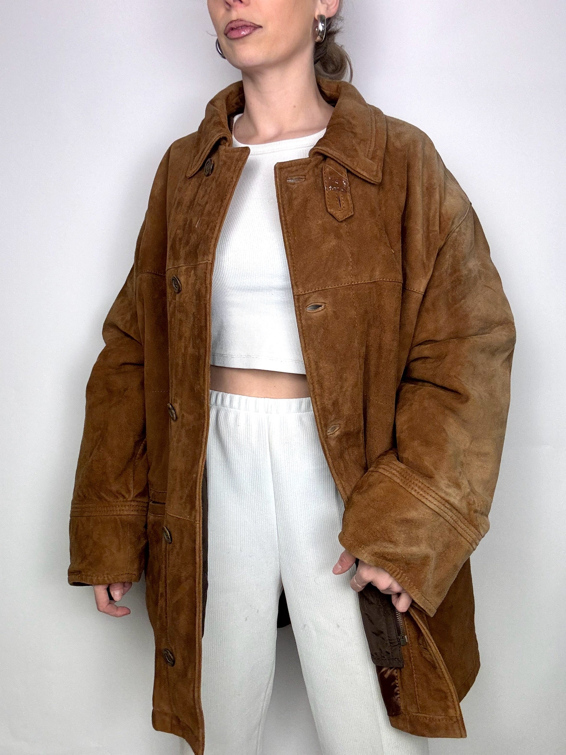 Veste en daim 3 en 1 brune XL vintage