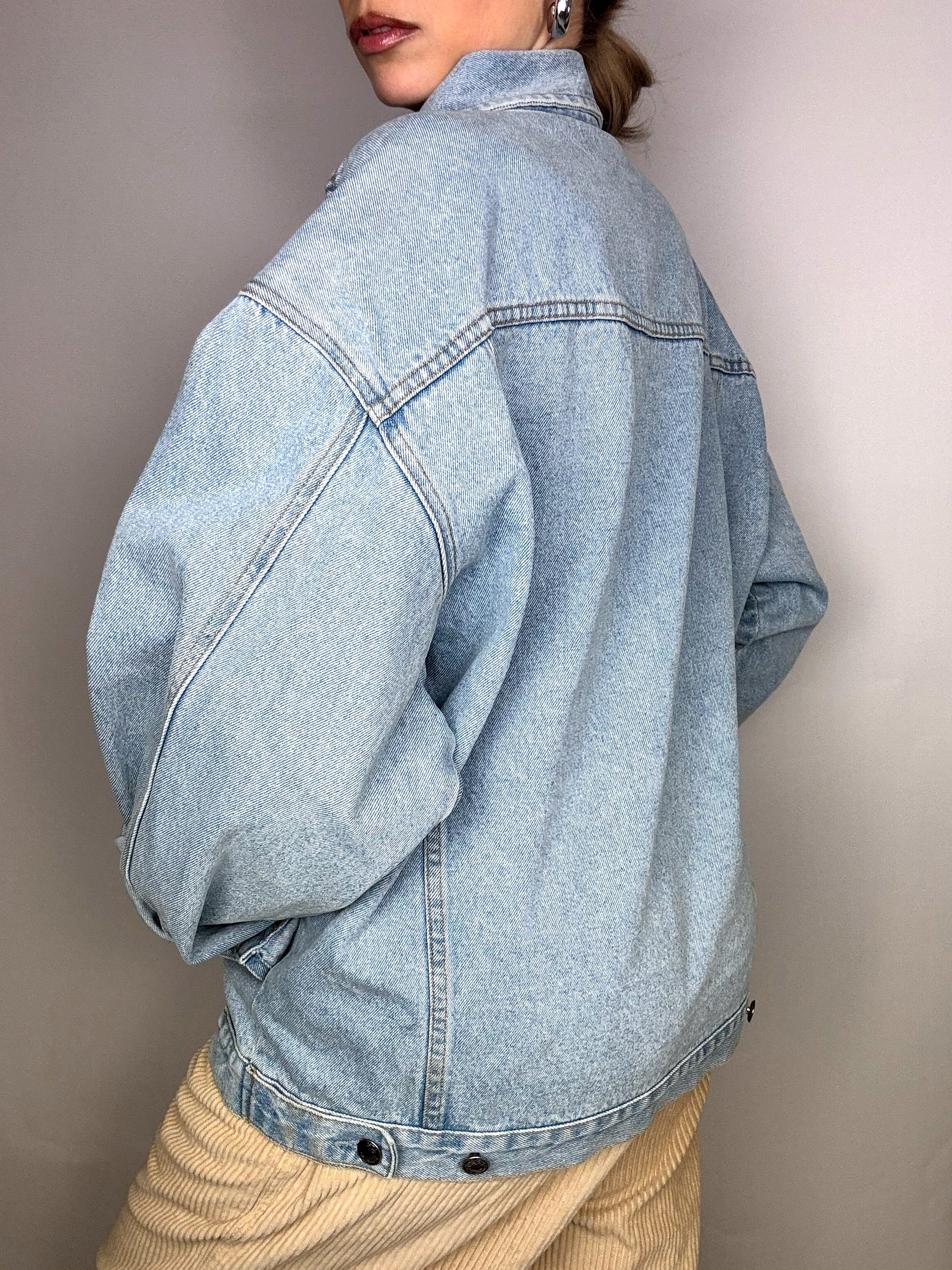 Oversize, coupe droite, son denim est clair mais pourra se marier avec des pièces plus foncées.