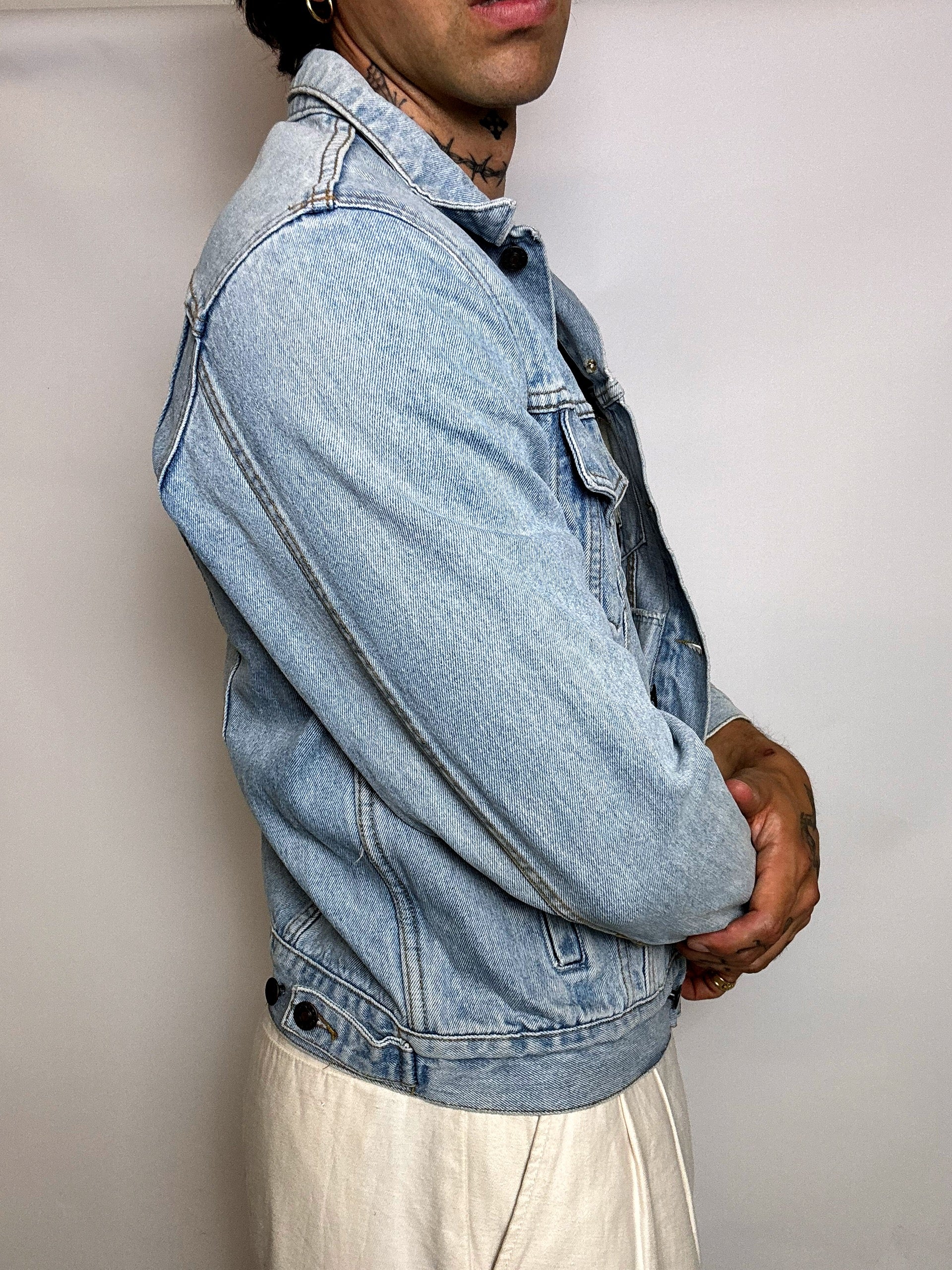 Oversize, son denim est clair mais pourra se marier avec des pièces plus foncées.