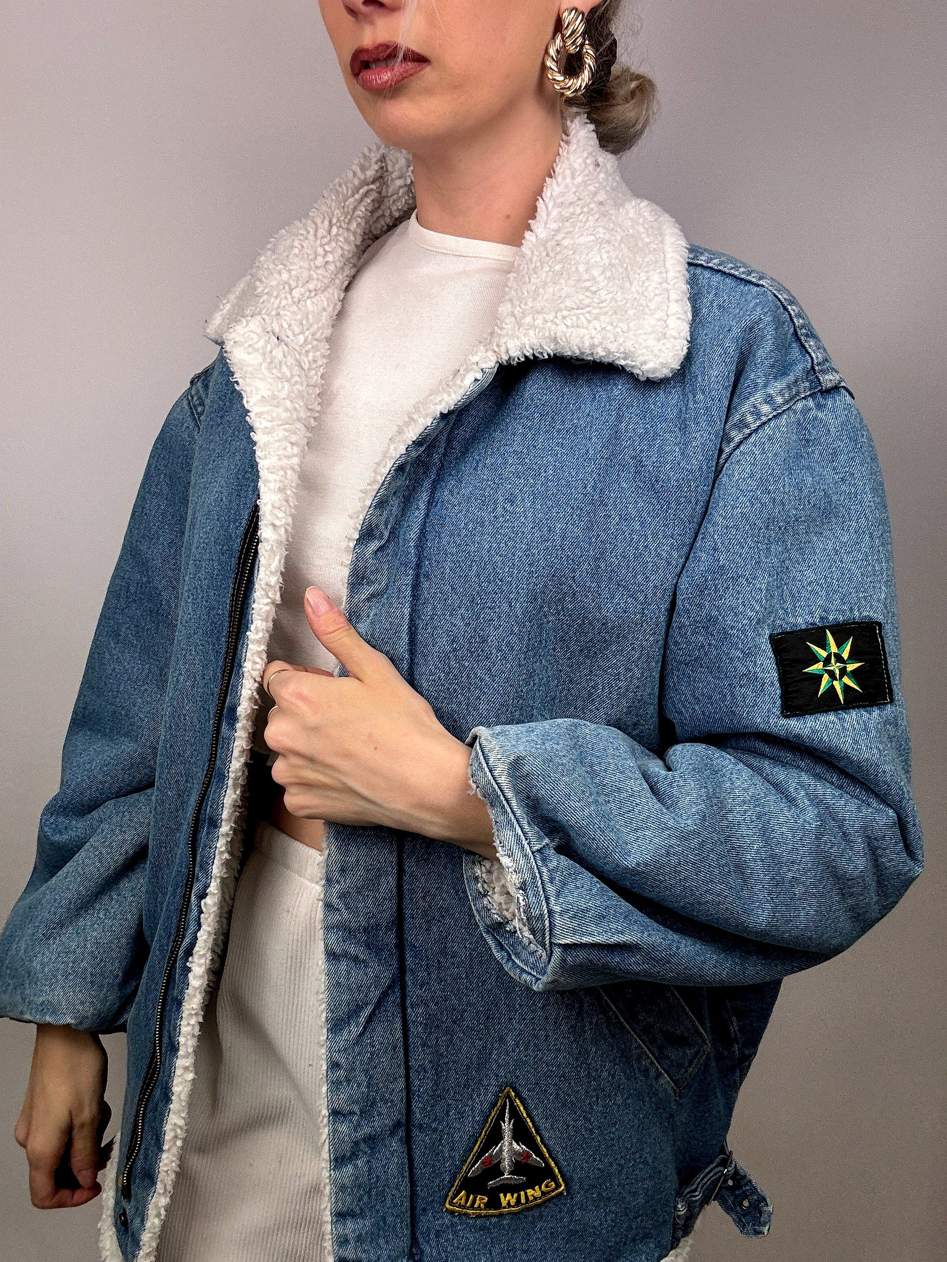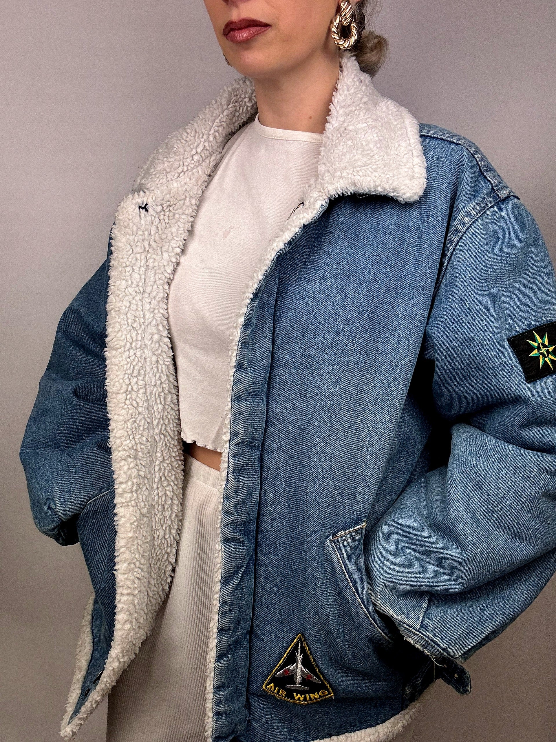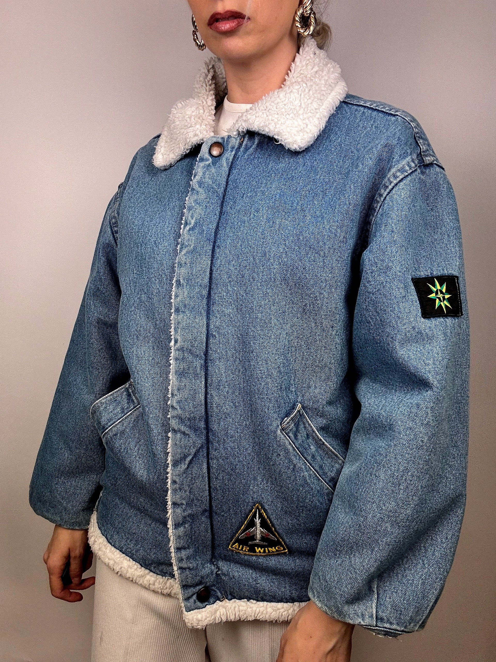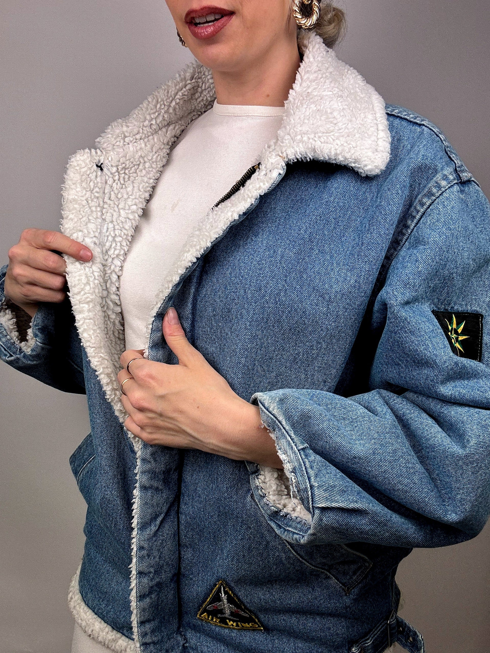Veste en denim fourrée en bouclette vintage