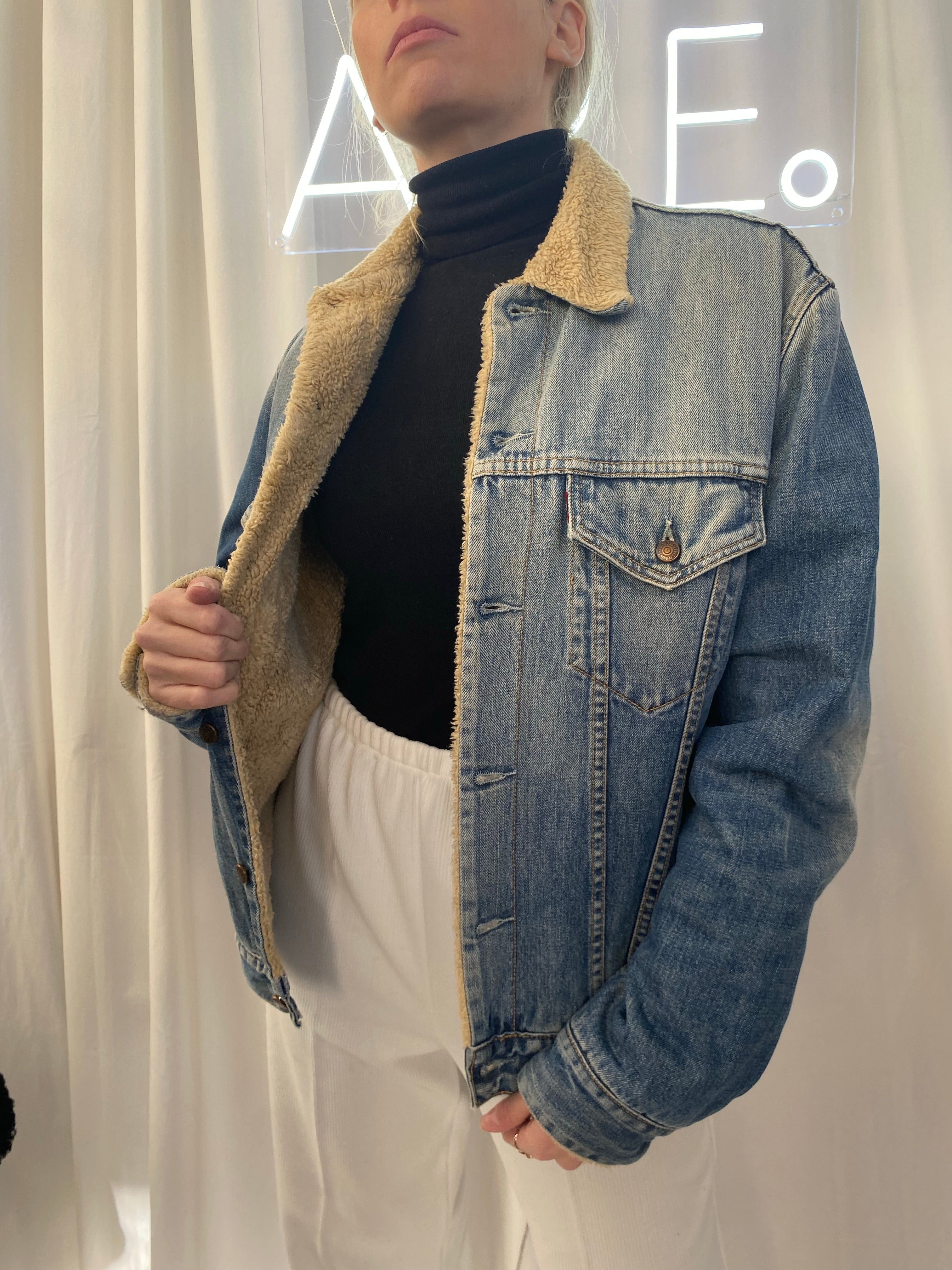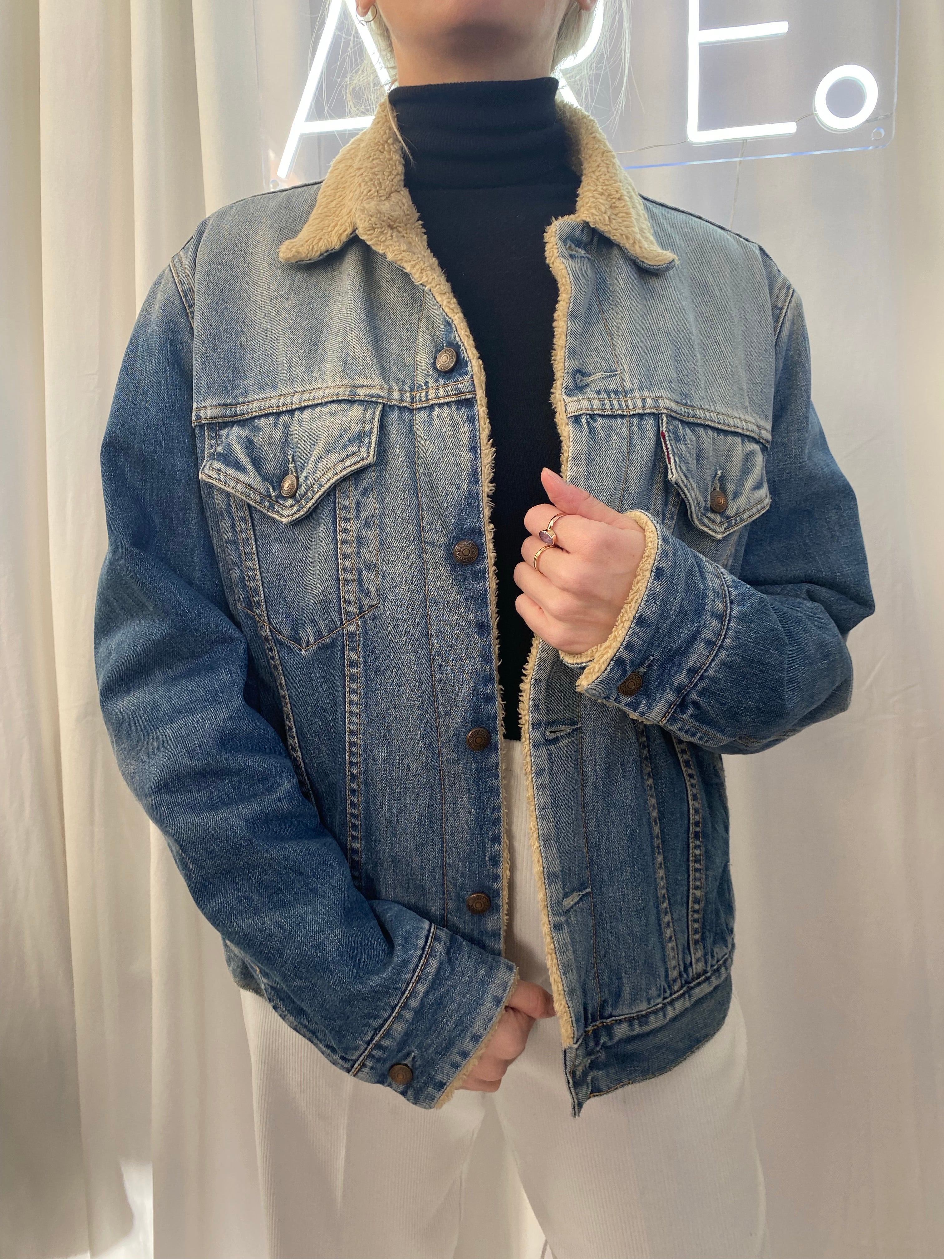 Veste en jeans Levi's bleue claire doublée mouton L