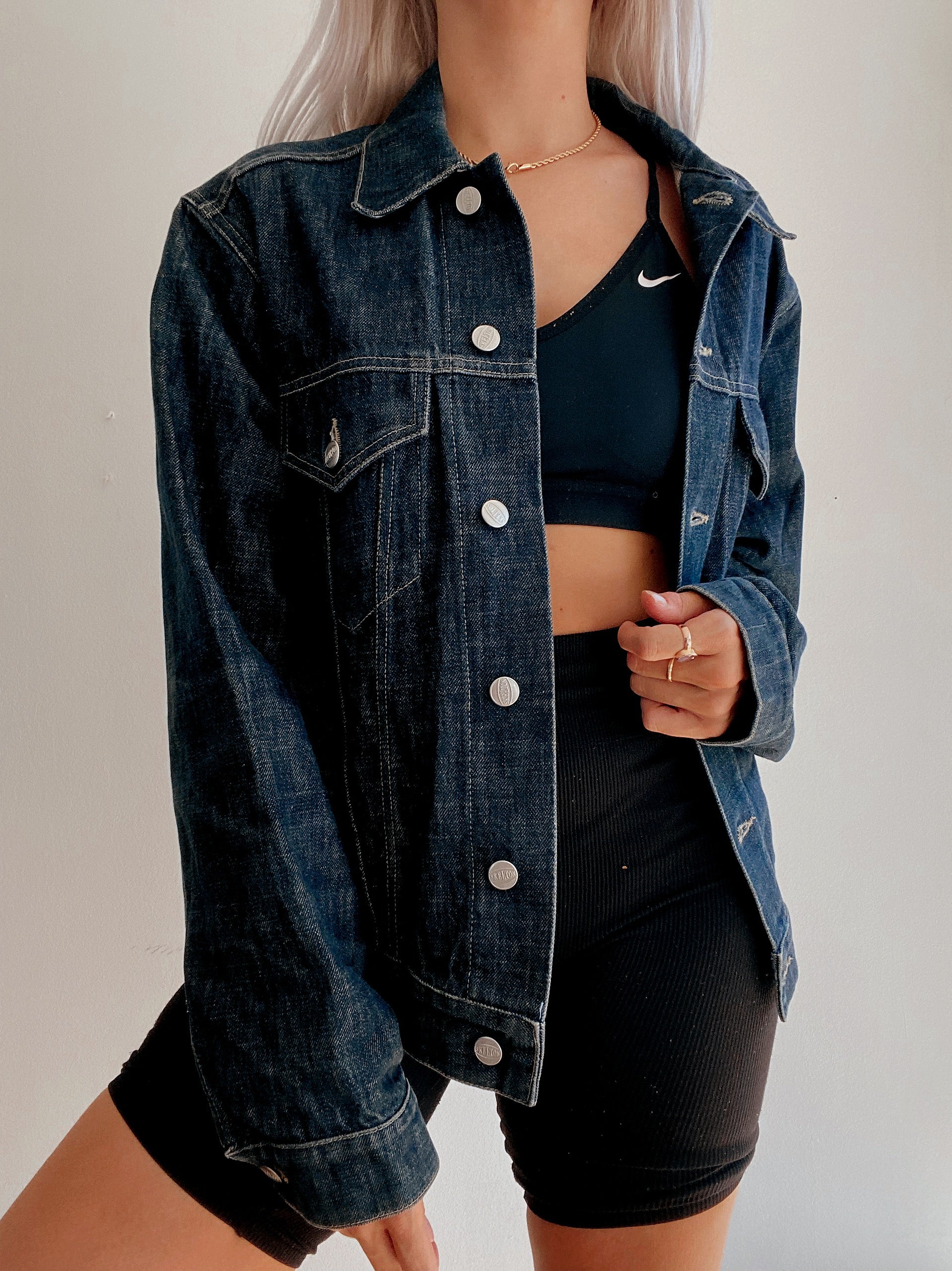 Veste en jeans vintage bleue très foncée lavée