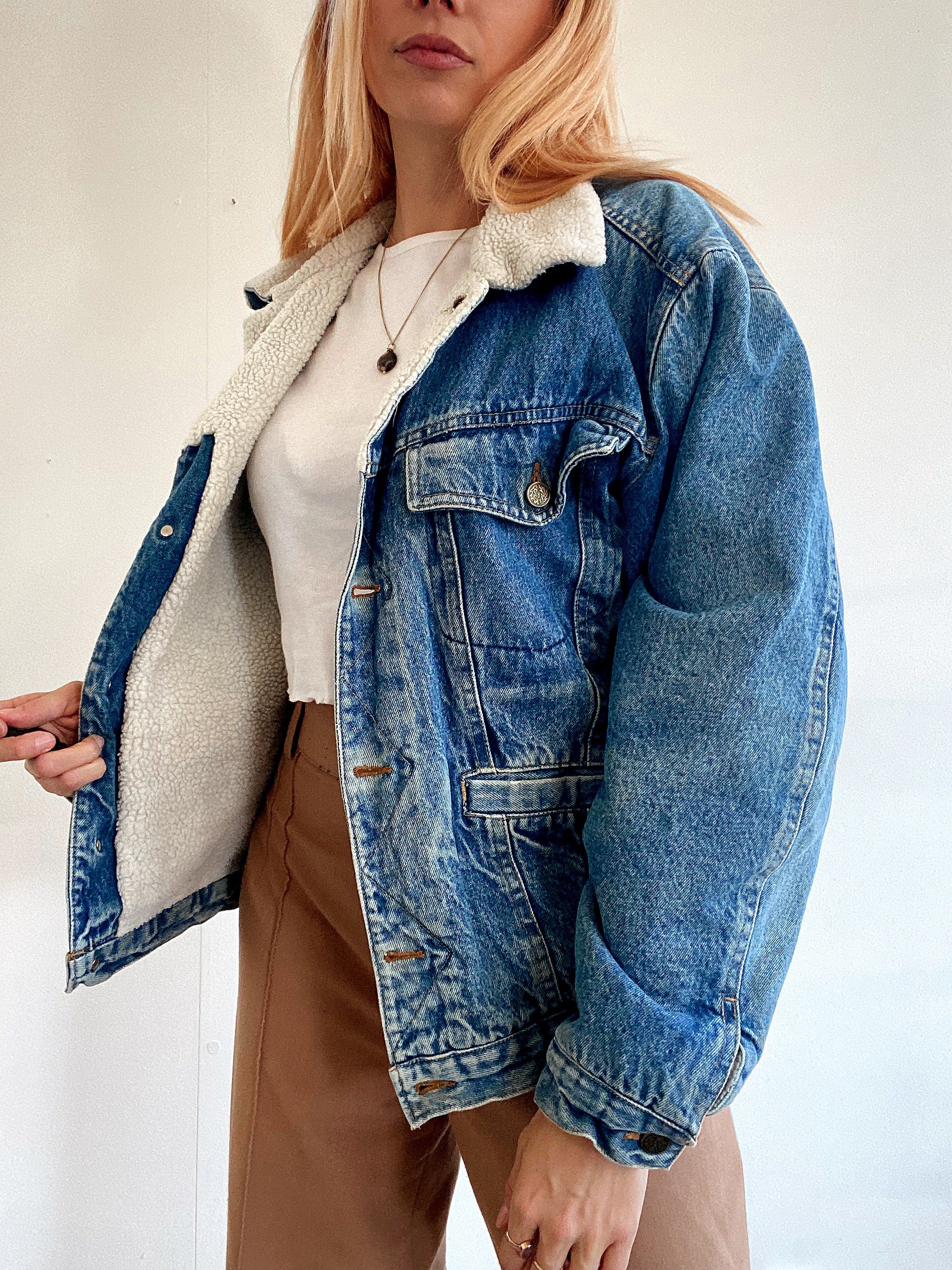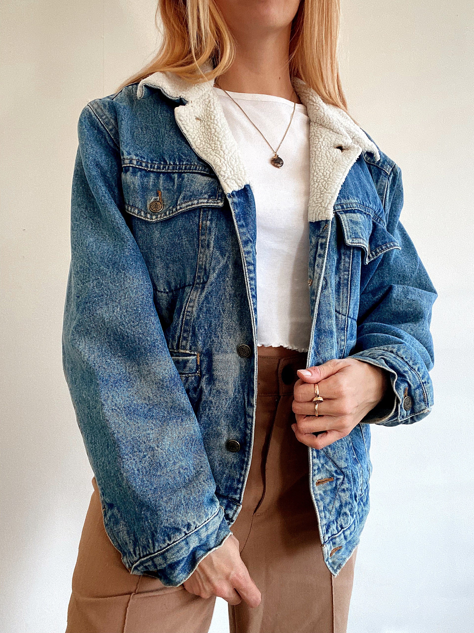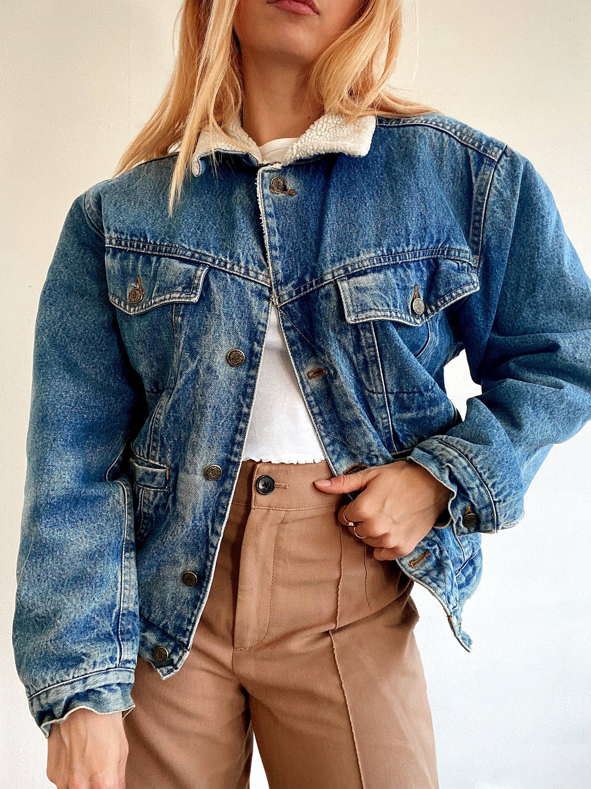 Veste en jeans vintage intérieur mouton M