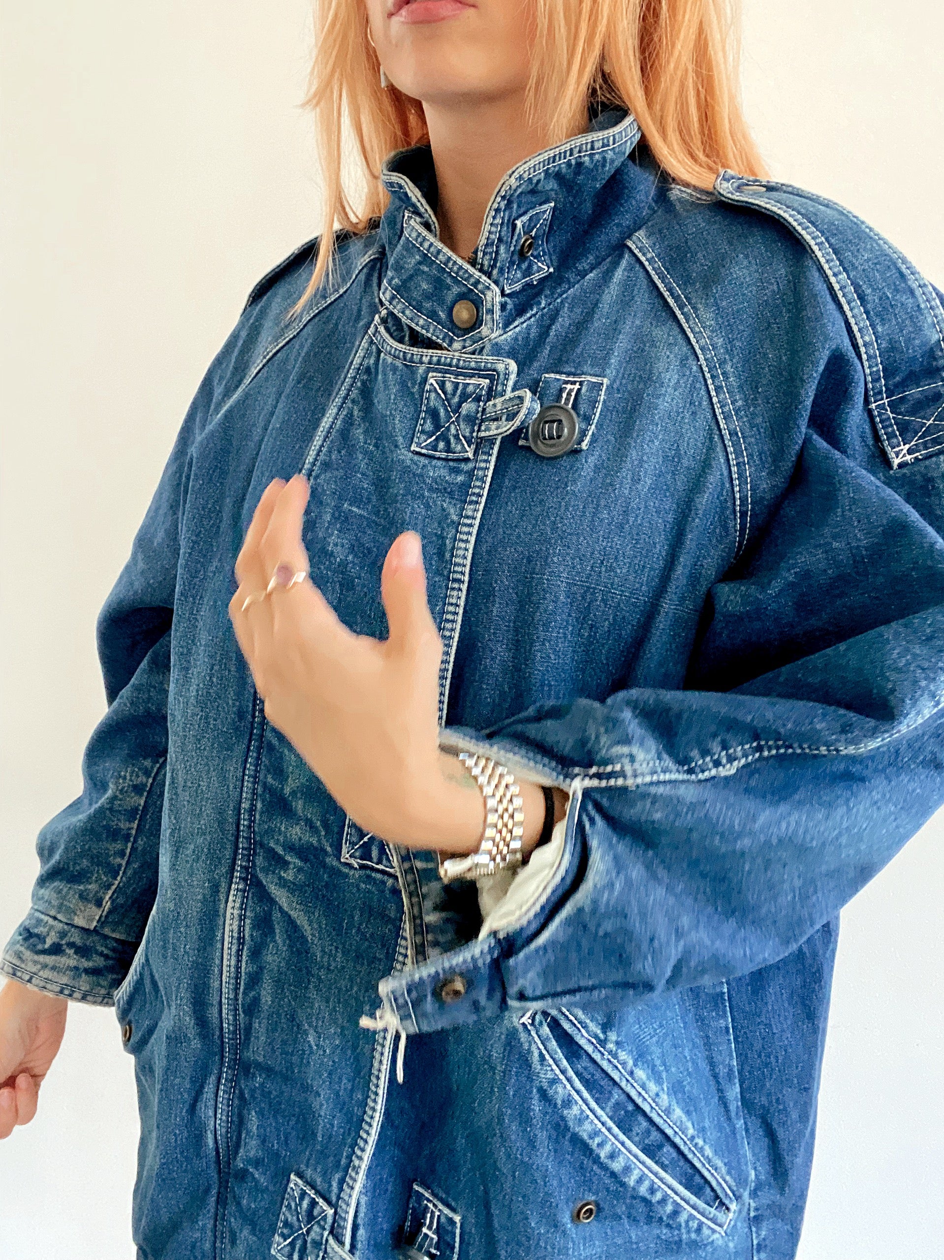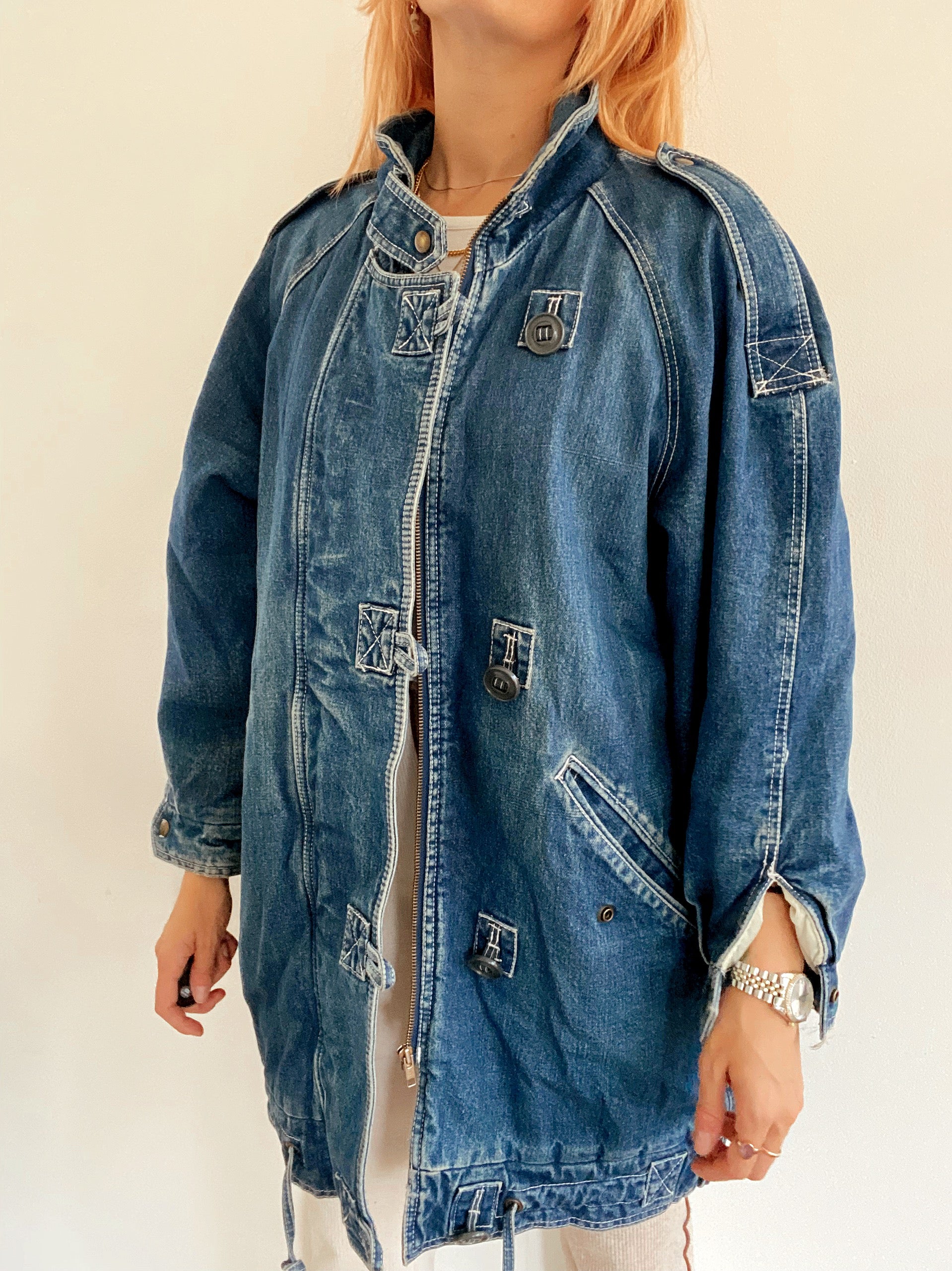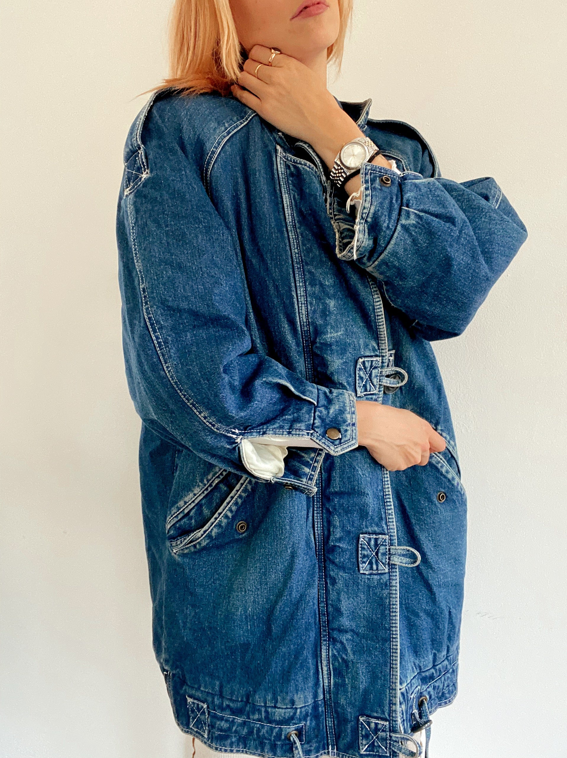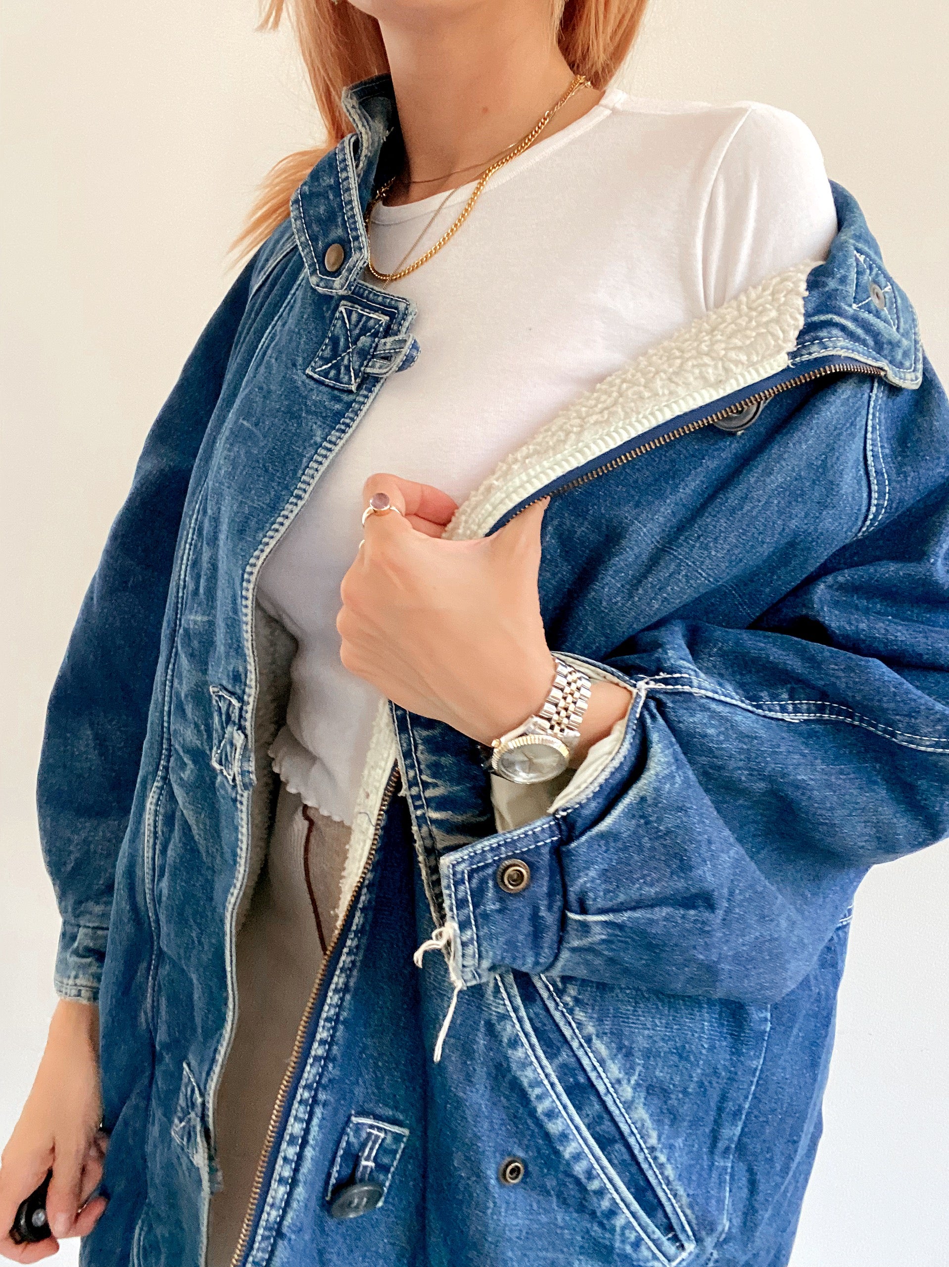 Veste en jeans vintage mi-longue oversized intérieur mouton M