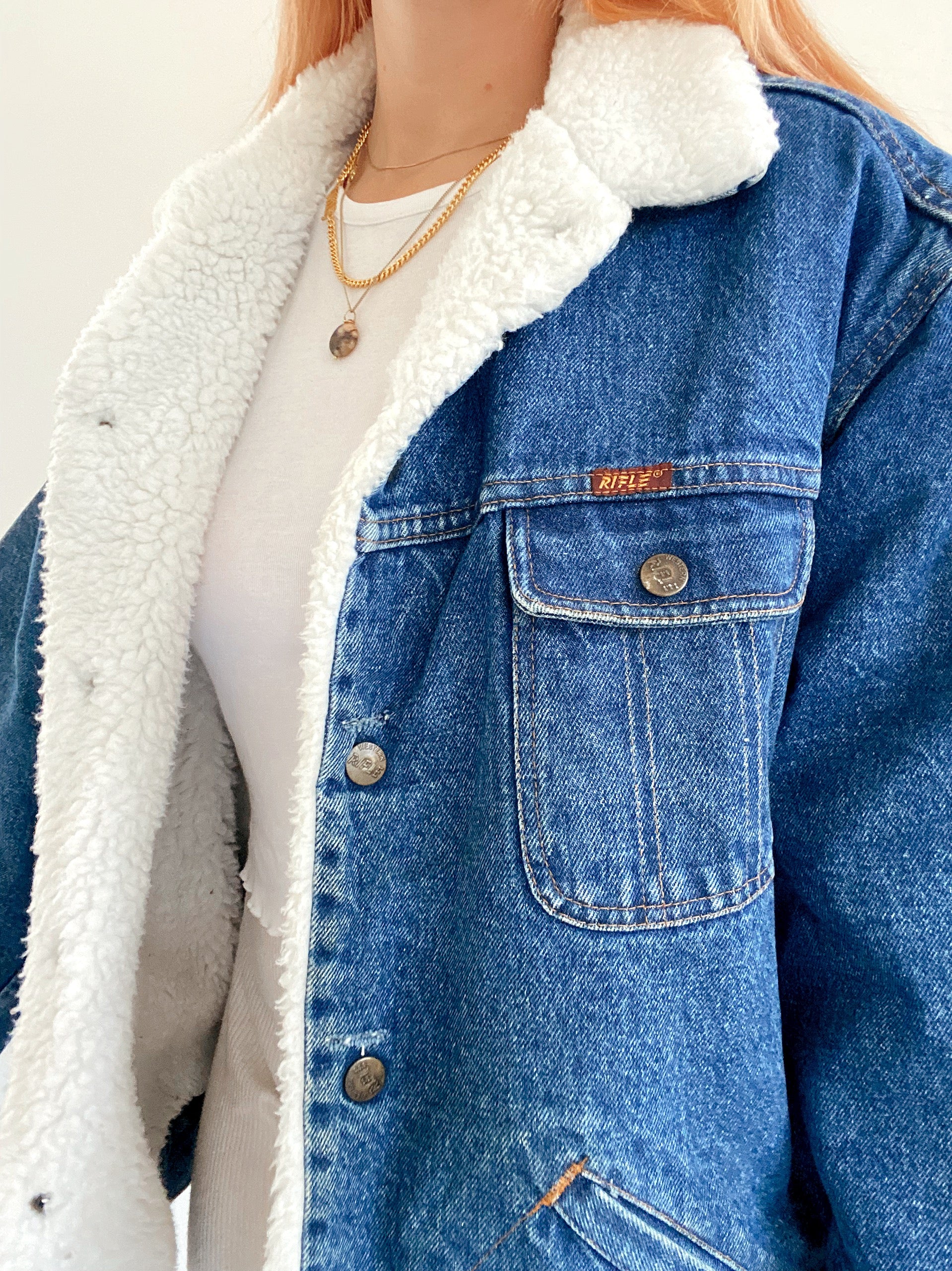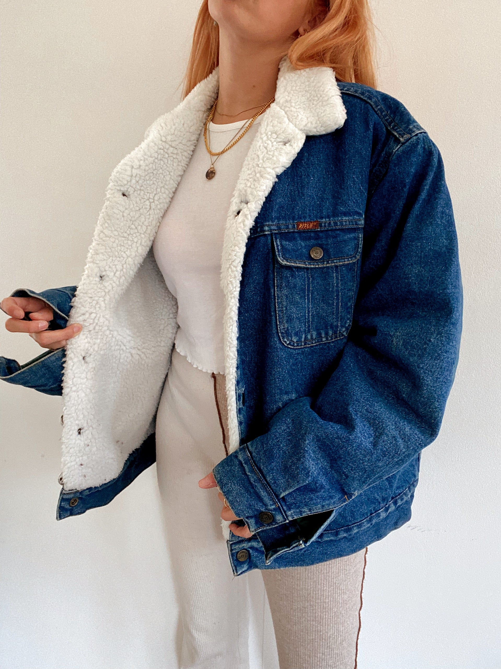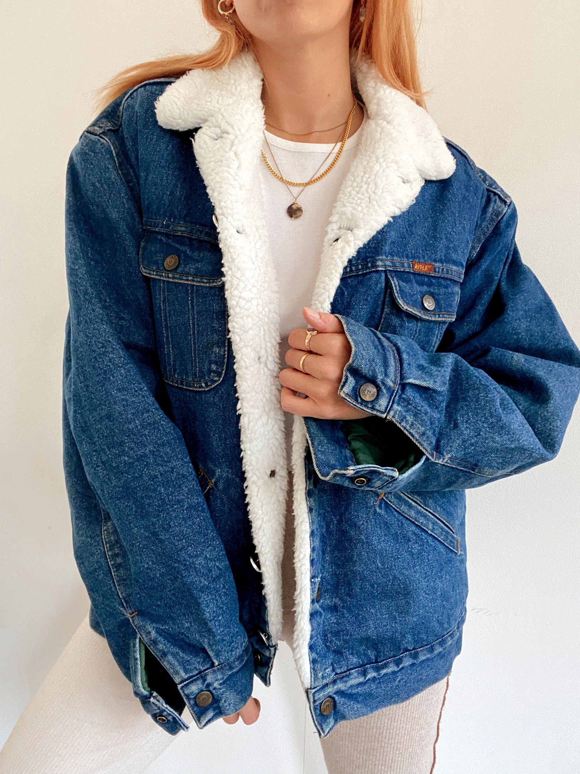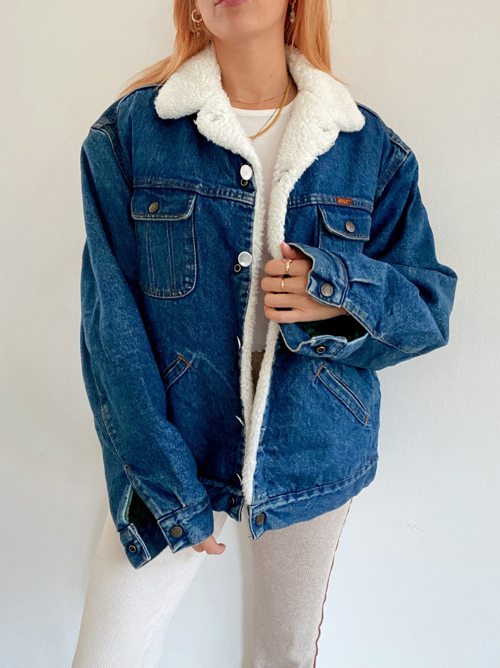 Veste en jeans vintage oversized intérieur mouton XL