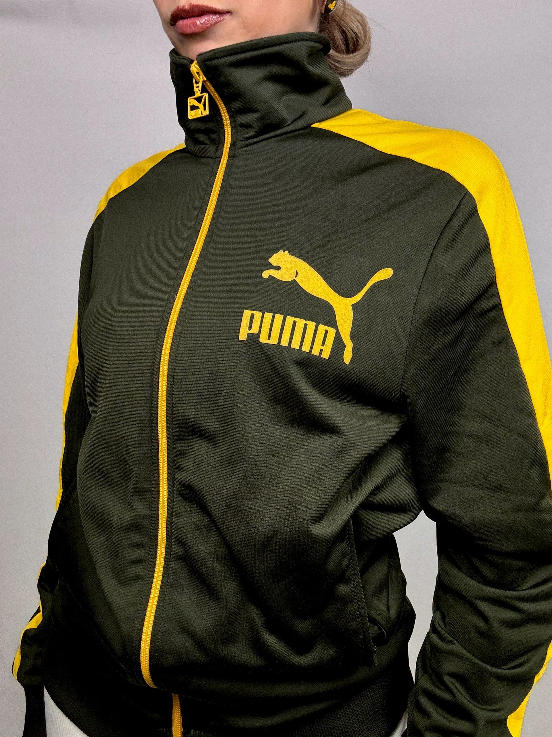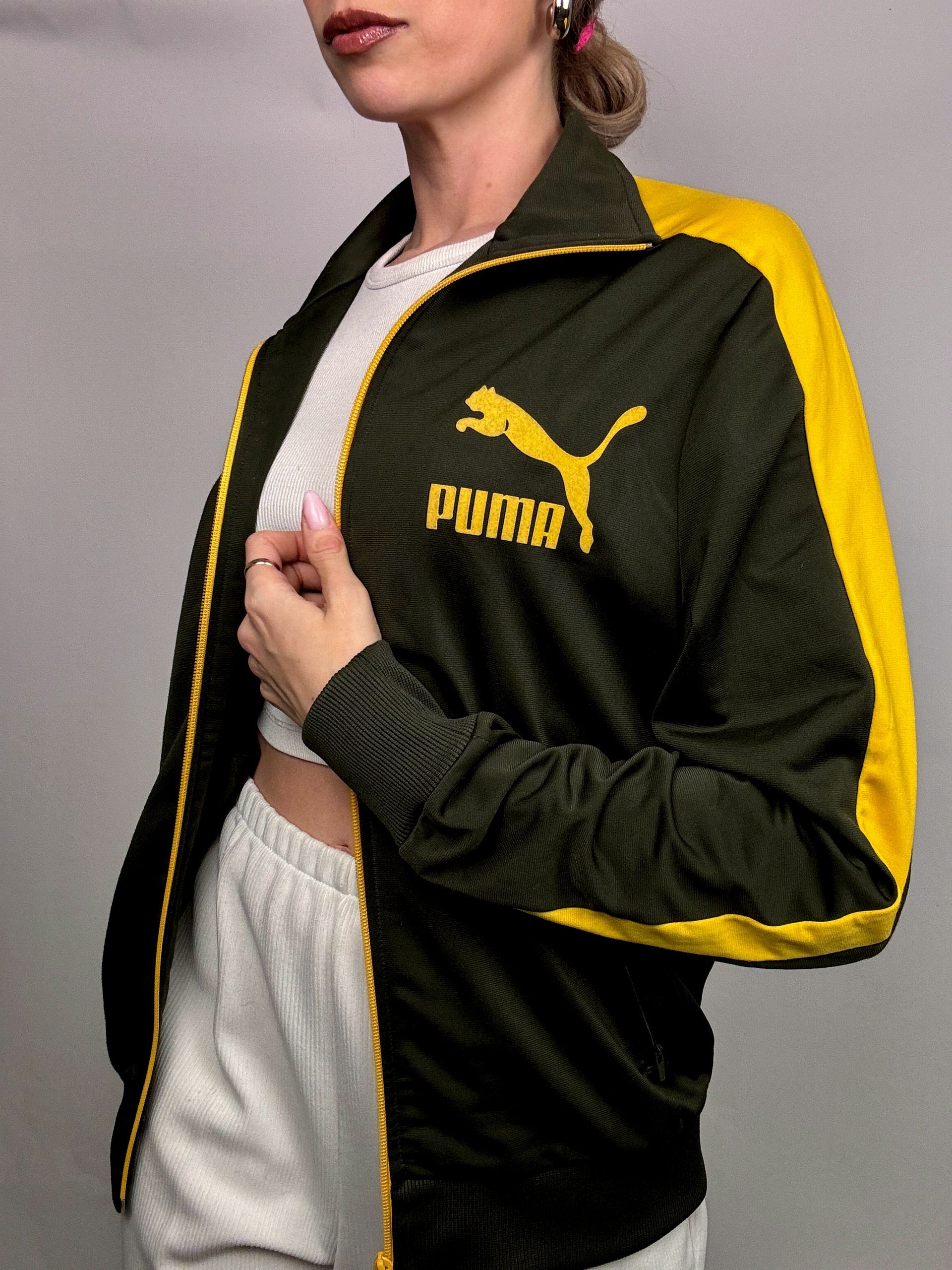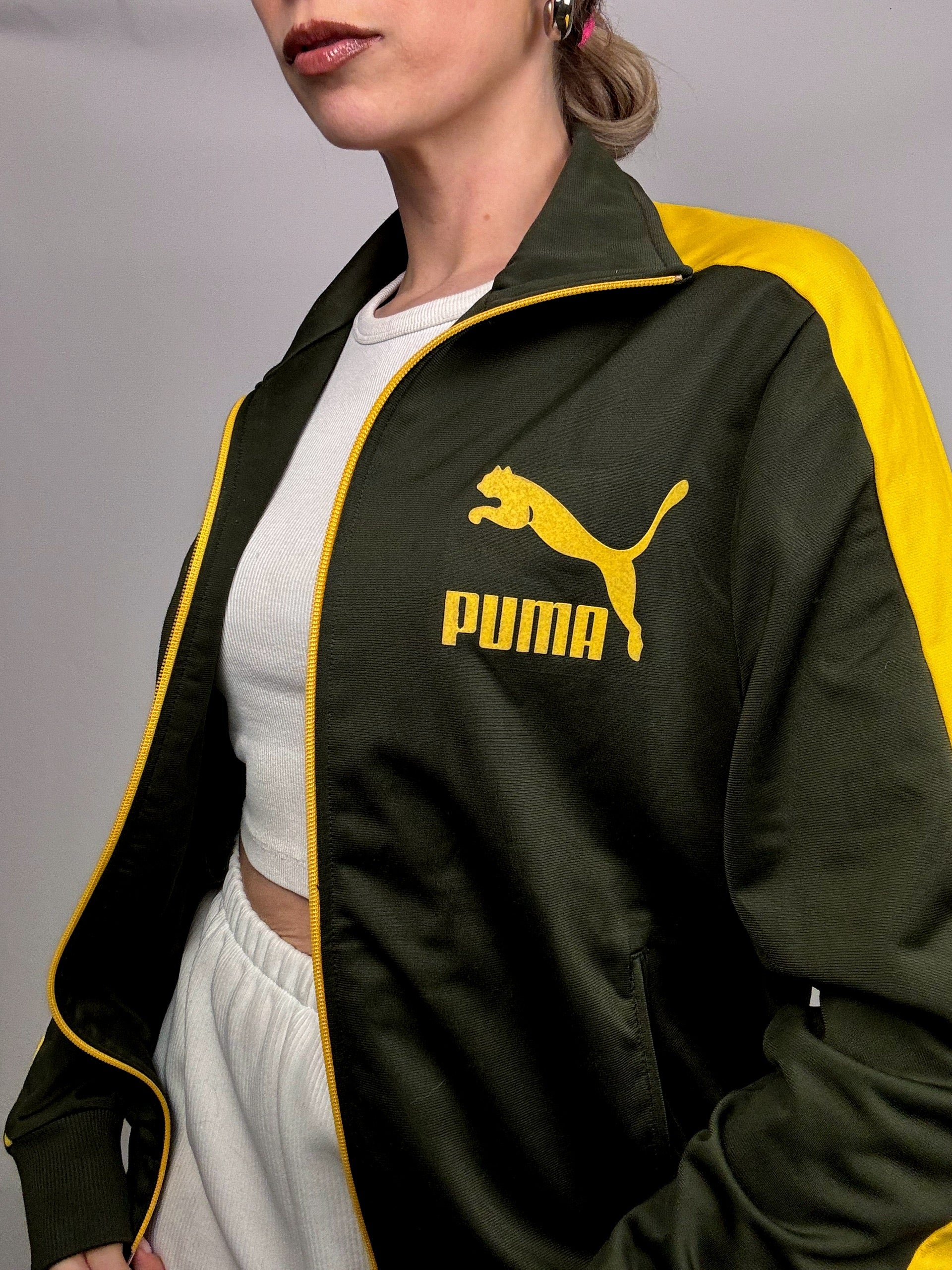 Veste en nylon kaki et jaune PUMA S/M vintage