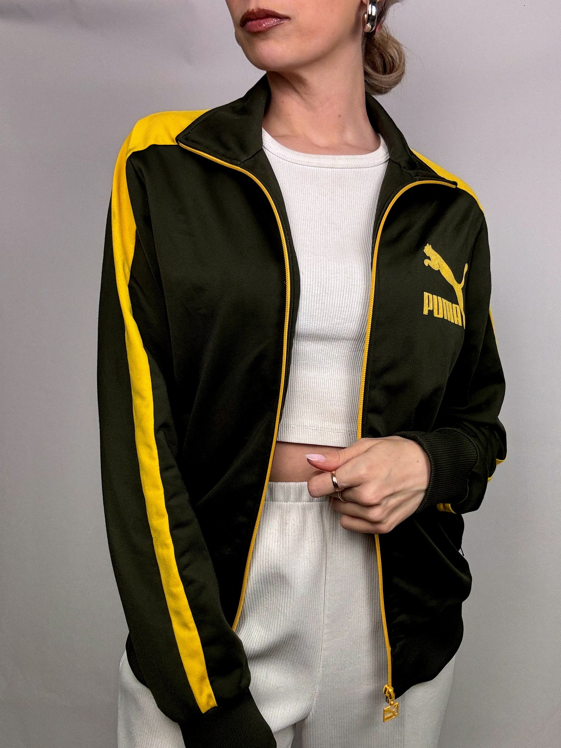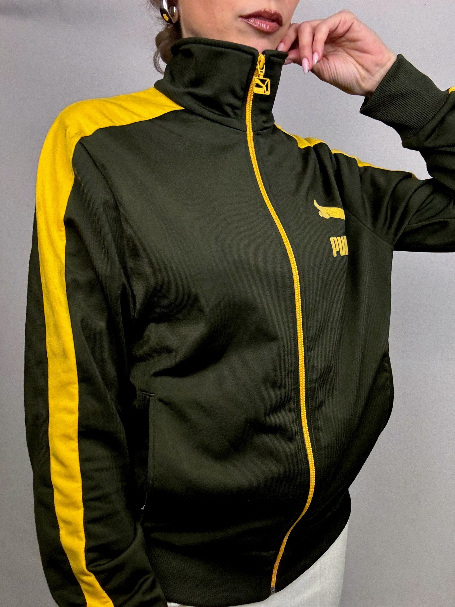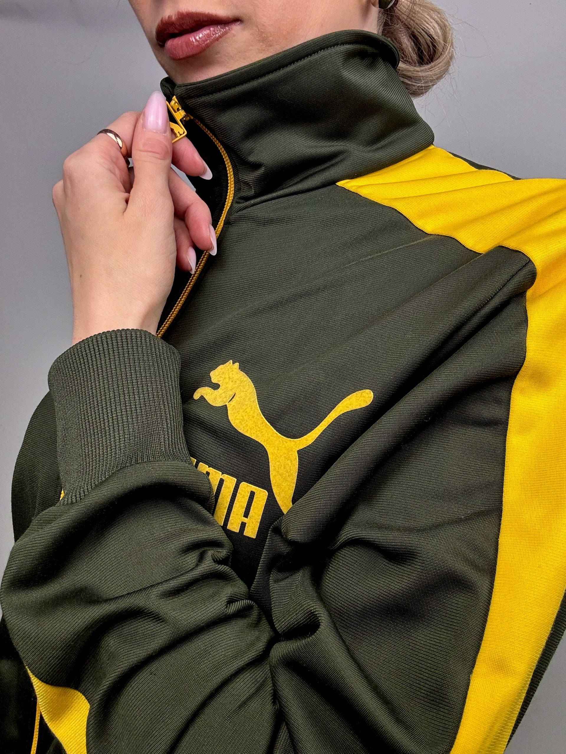 Veste en nylon kaki et jaune PUMA S/M vintage