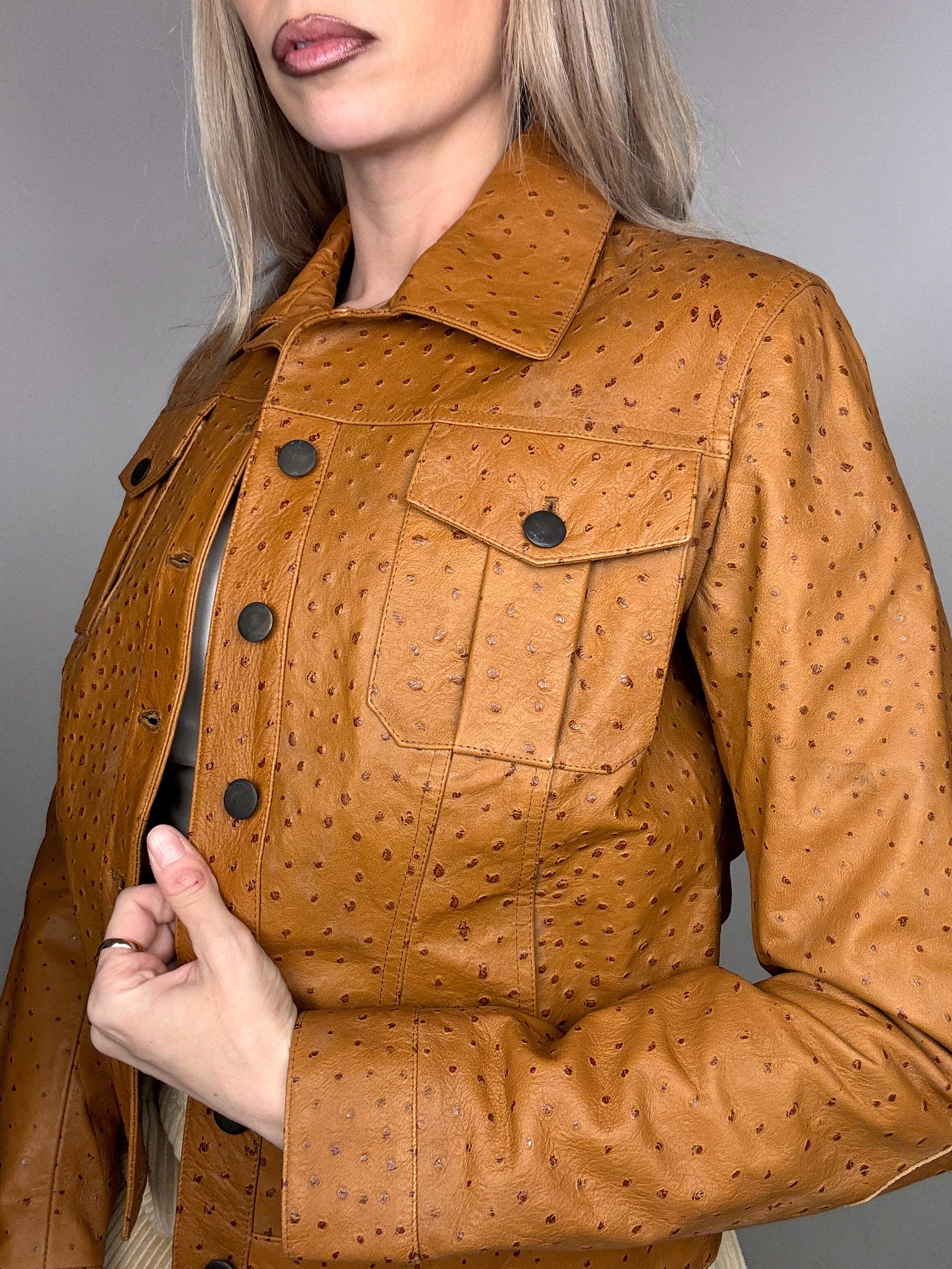Une veste incroyable en véritable cuir embossé façon autruche !