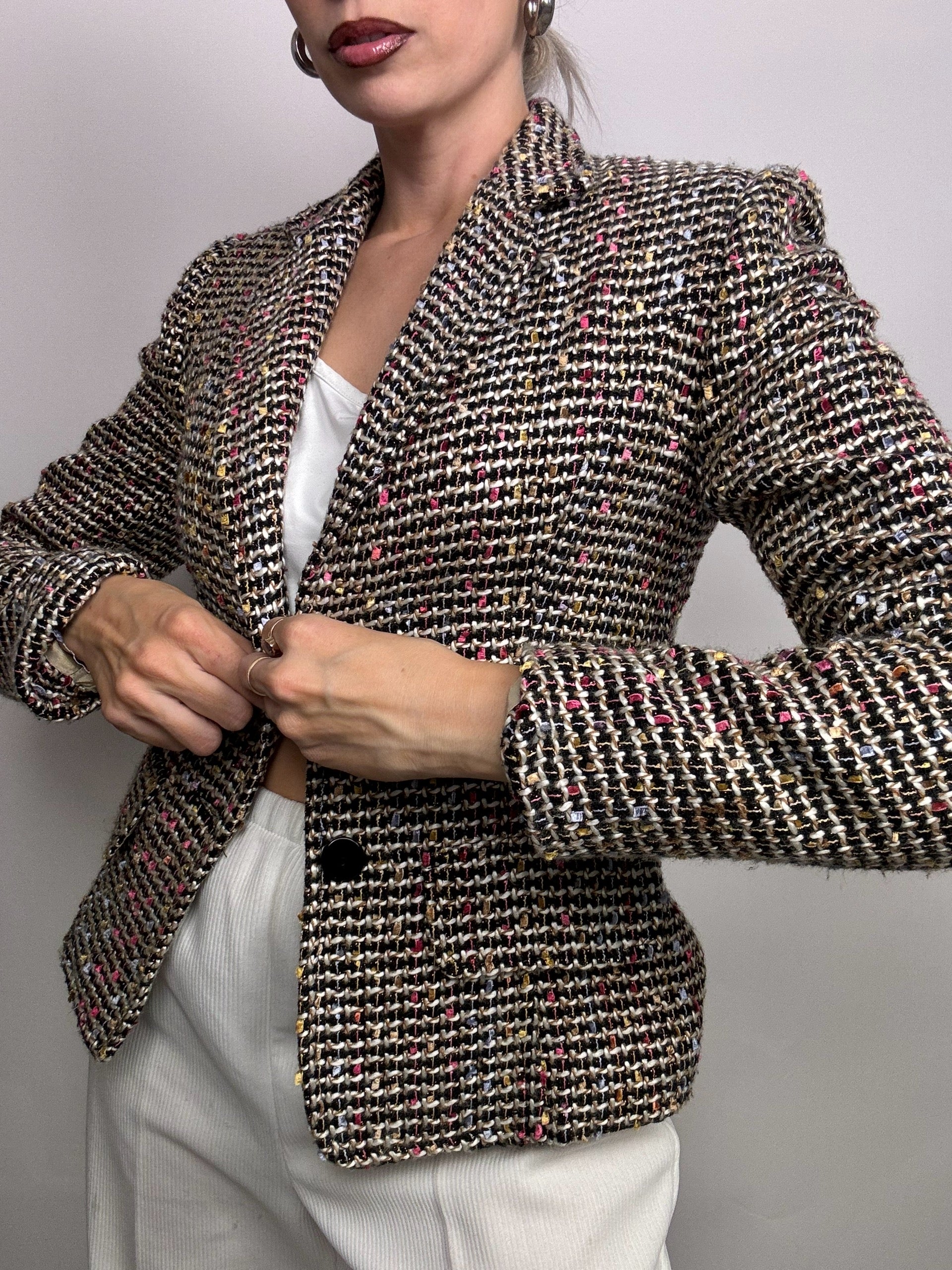 Cette piece se porte cintrée et tu peux l'accorder à une chemise et un pantalon a pince pour un look ultra preppy ou alors tu peux la laisser ouverte avec un tee shirt et un jean bleu pour une allure plus moderne..