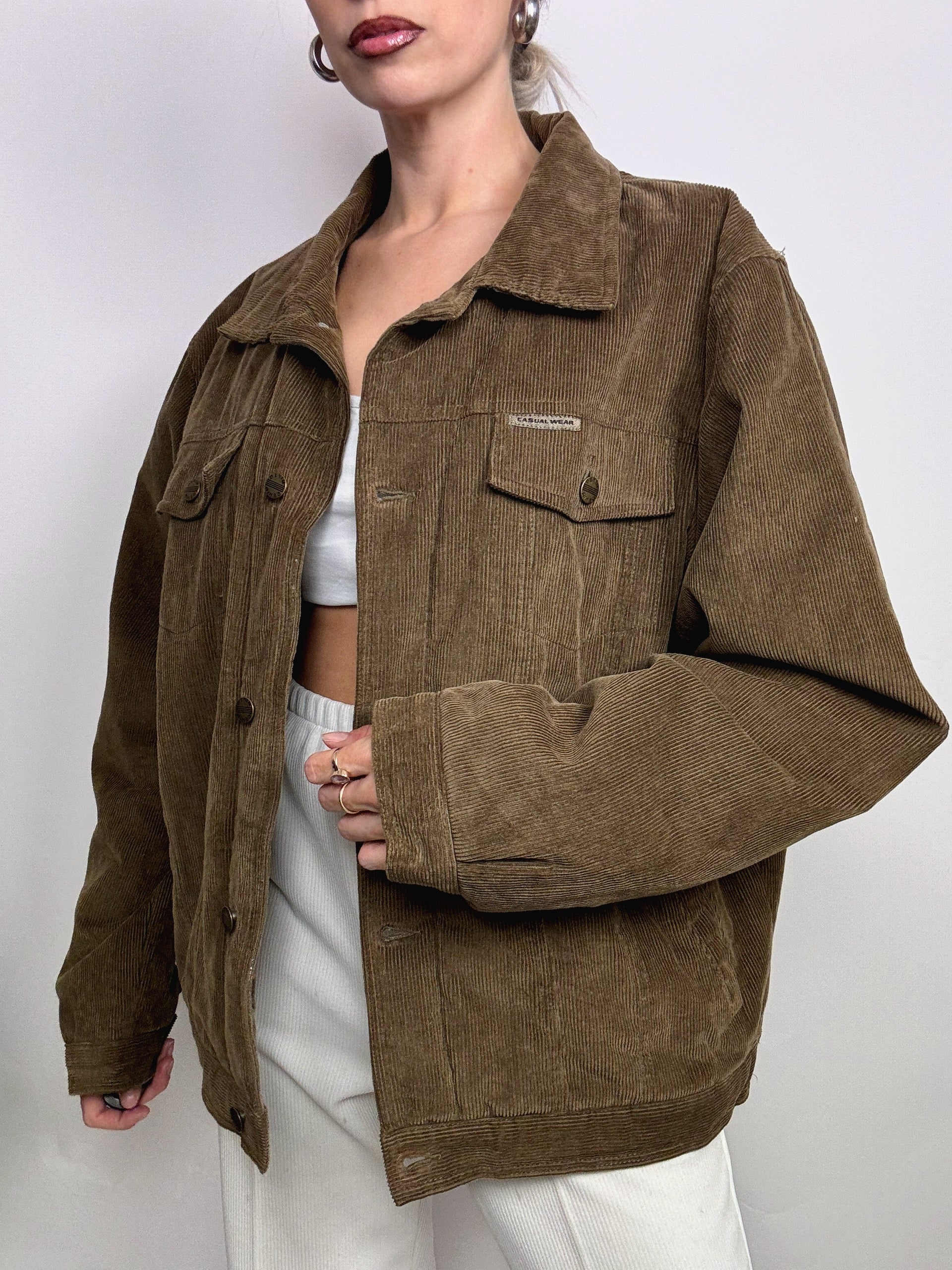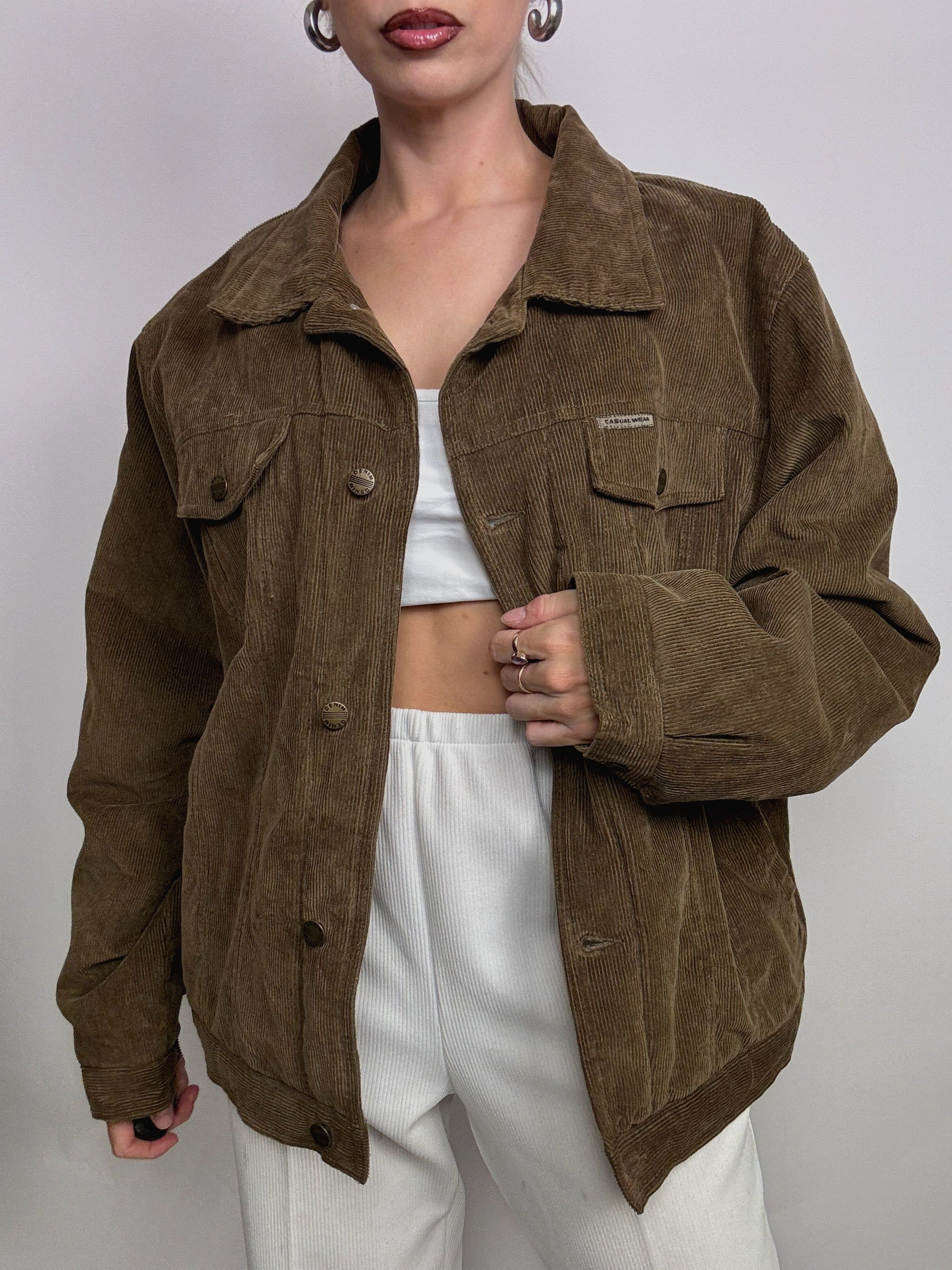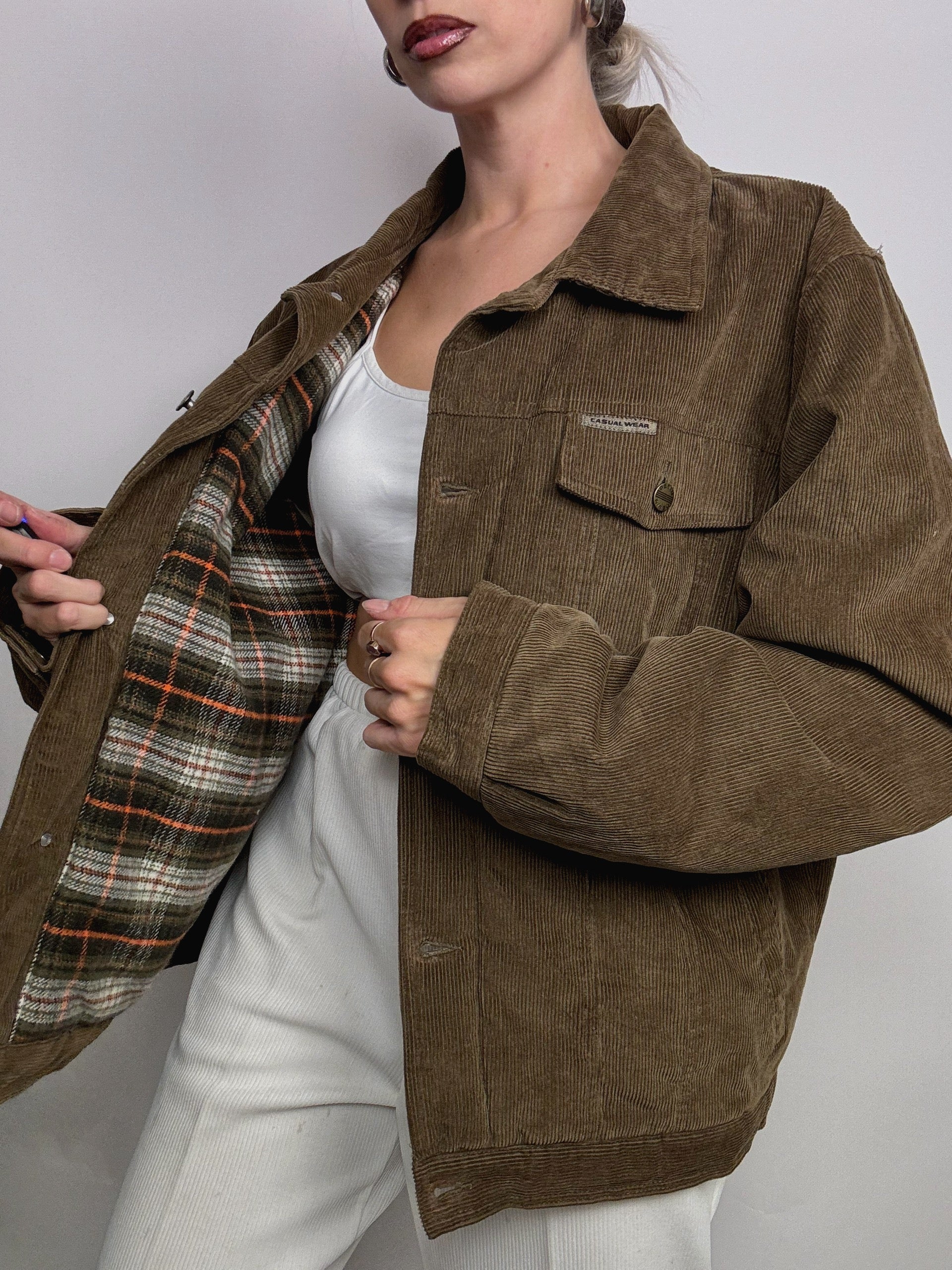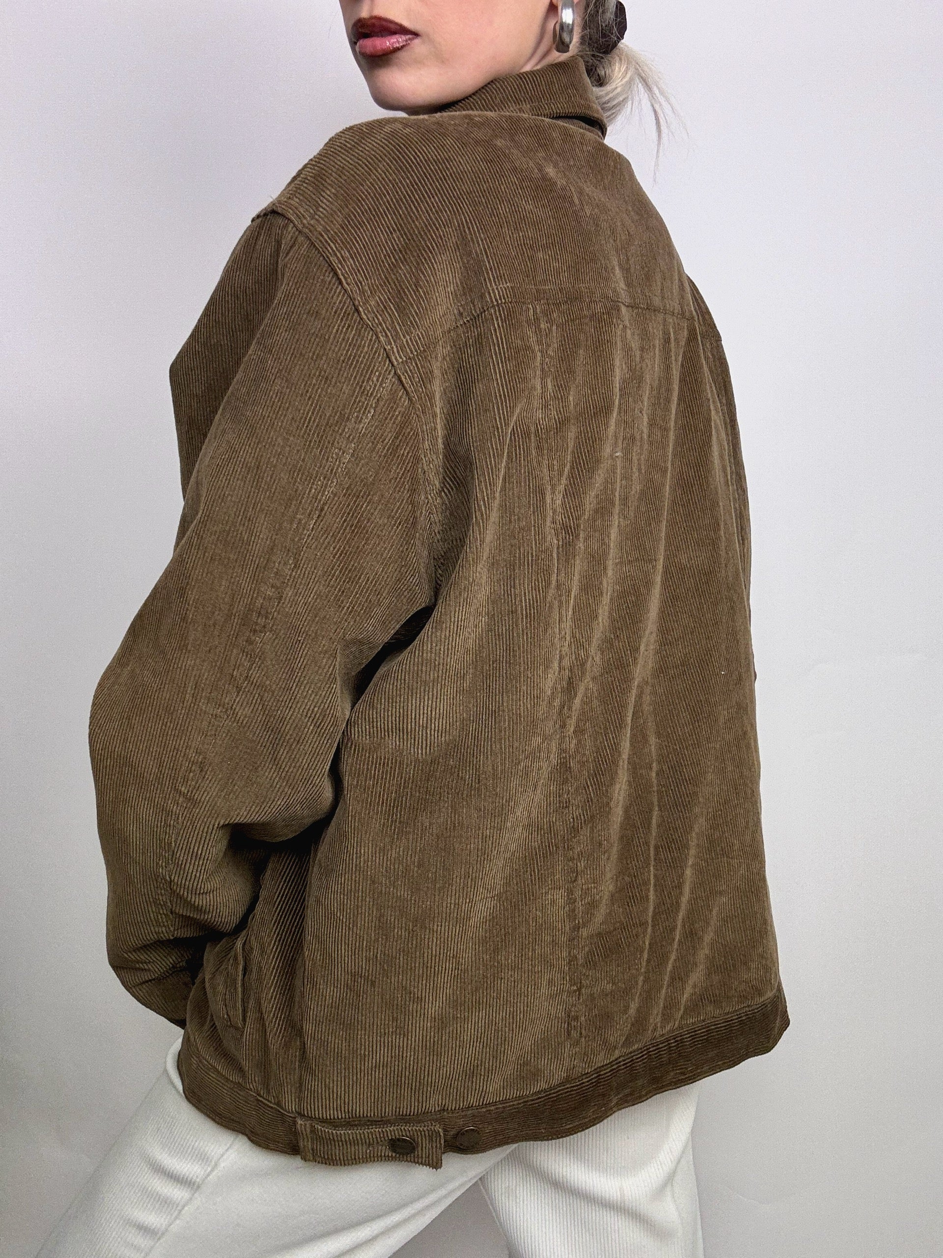 Veste vintage khaki en velours cotelé doublé