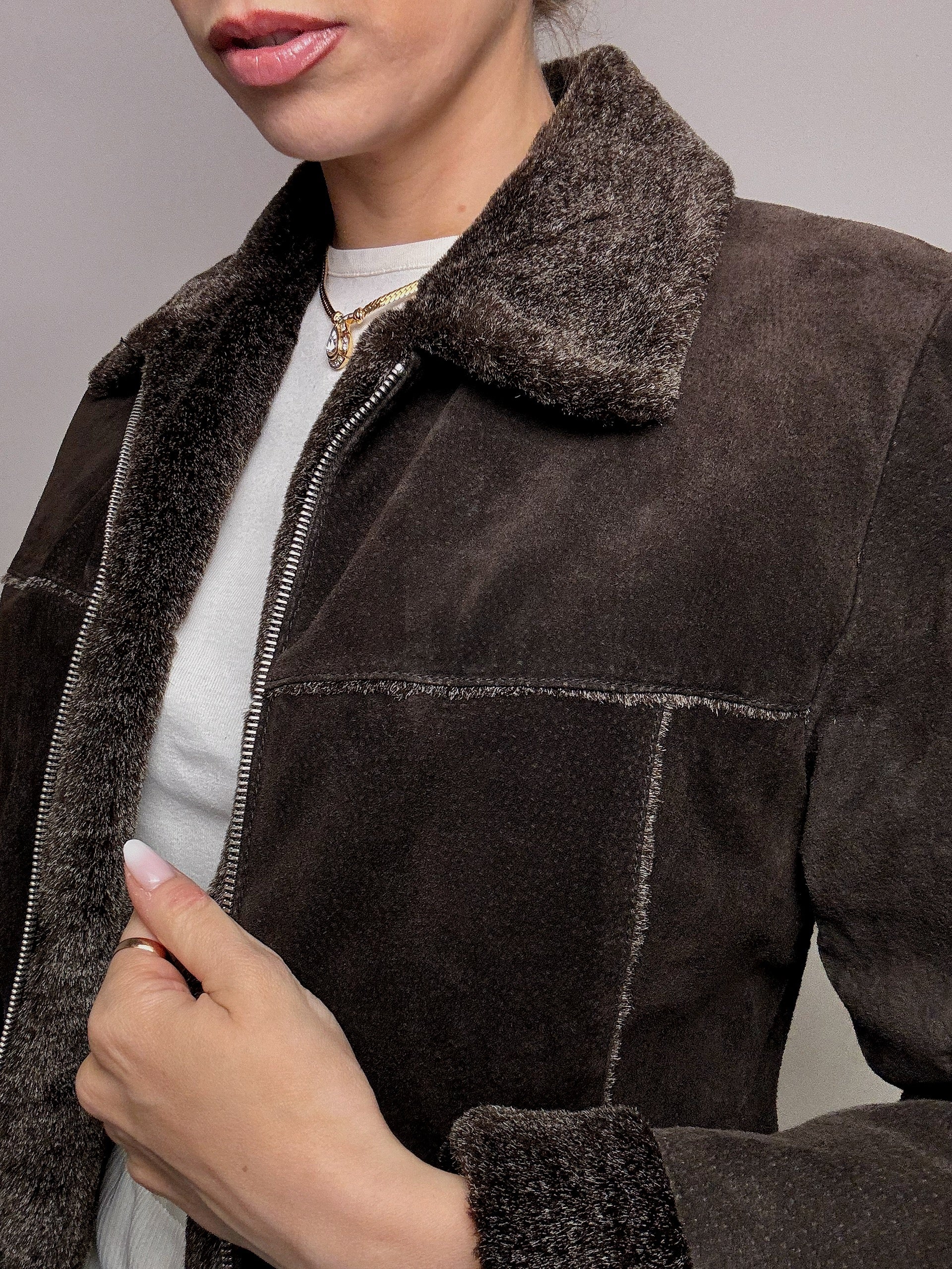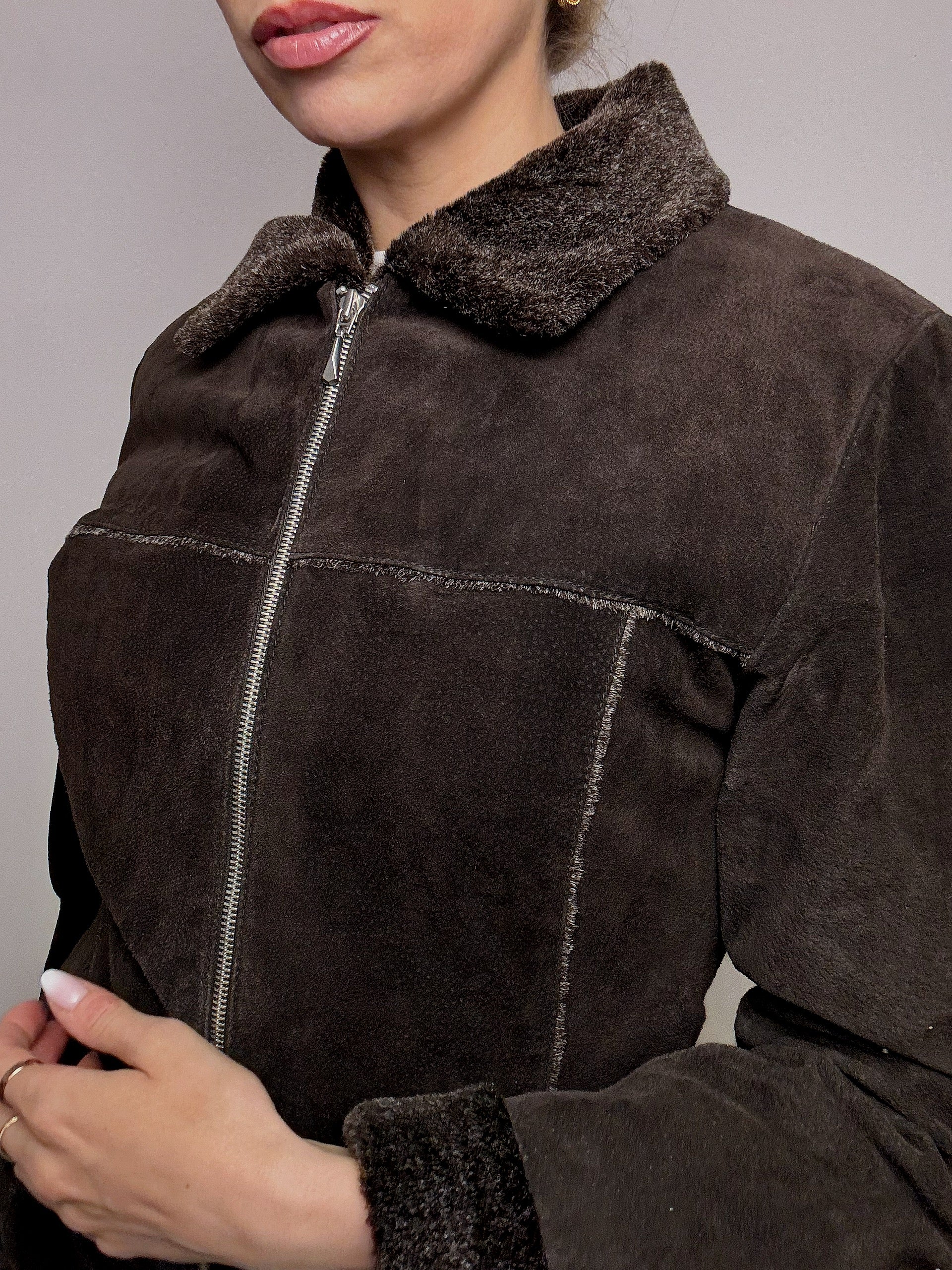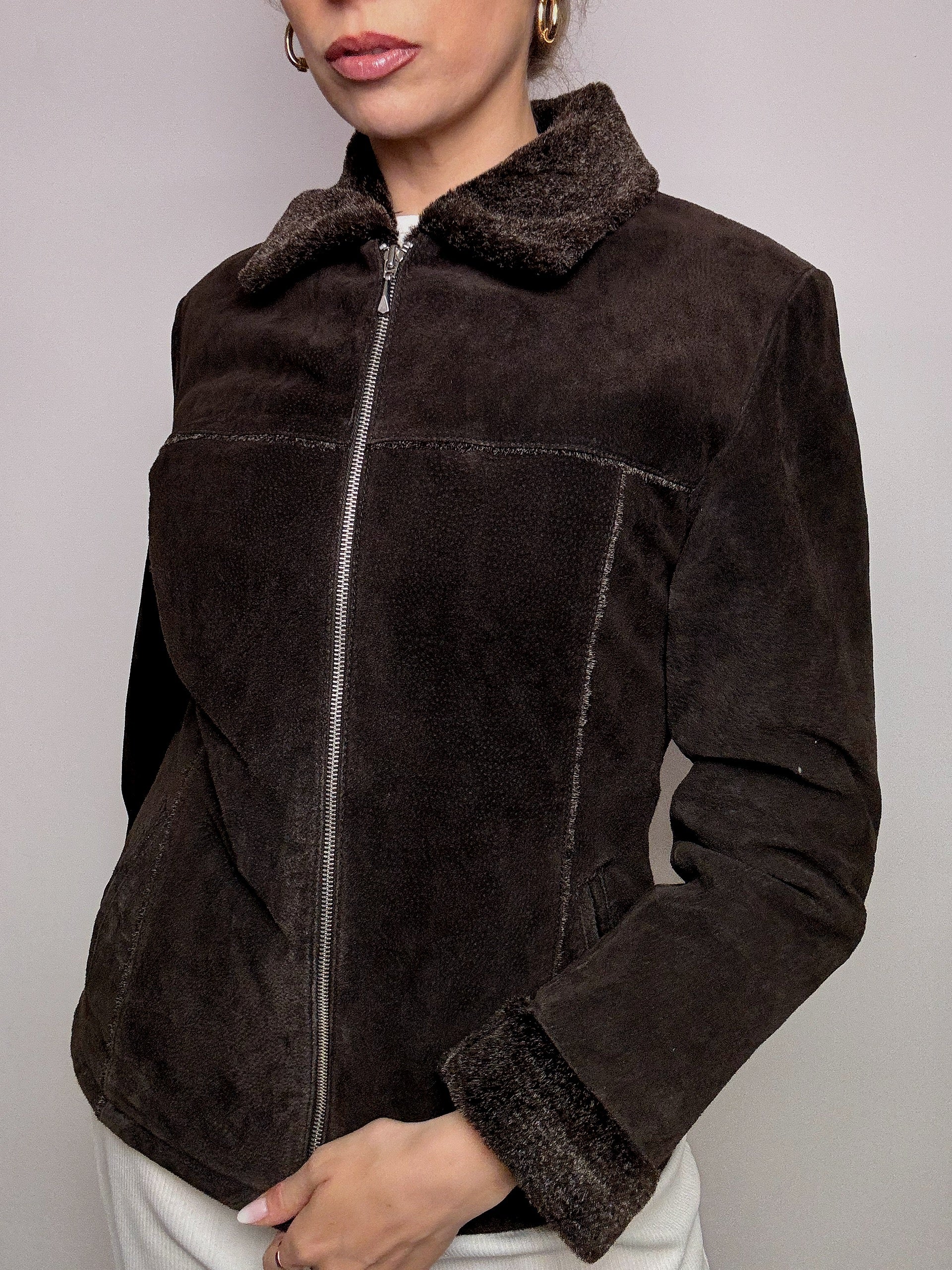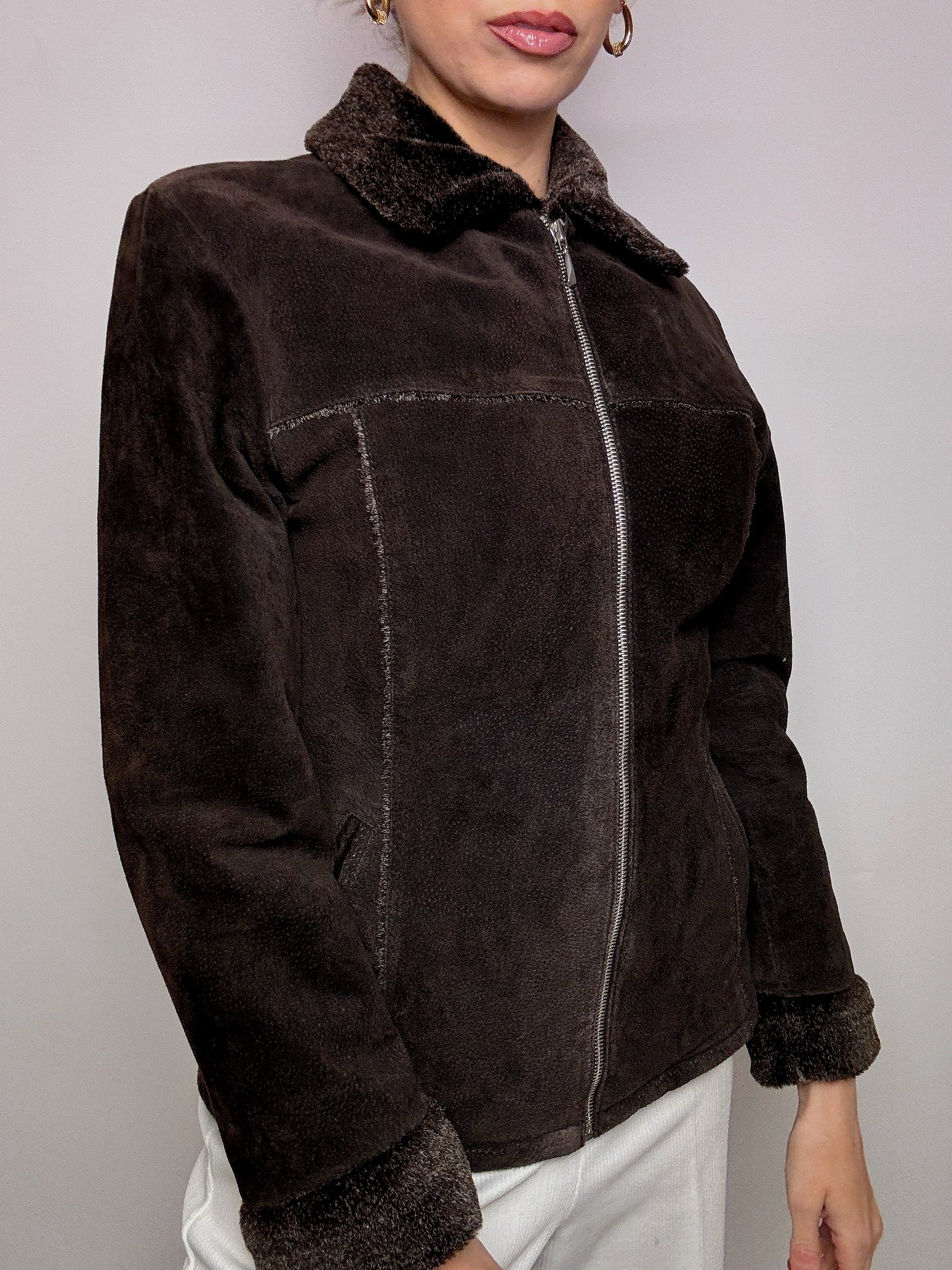 Veste marron fausse fourrure cintrée L vintage