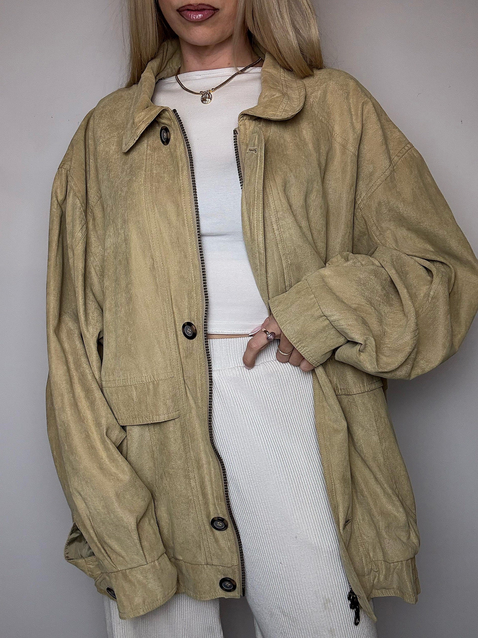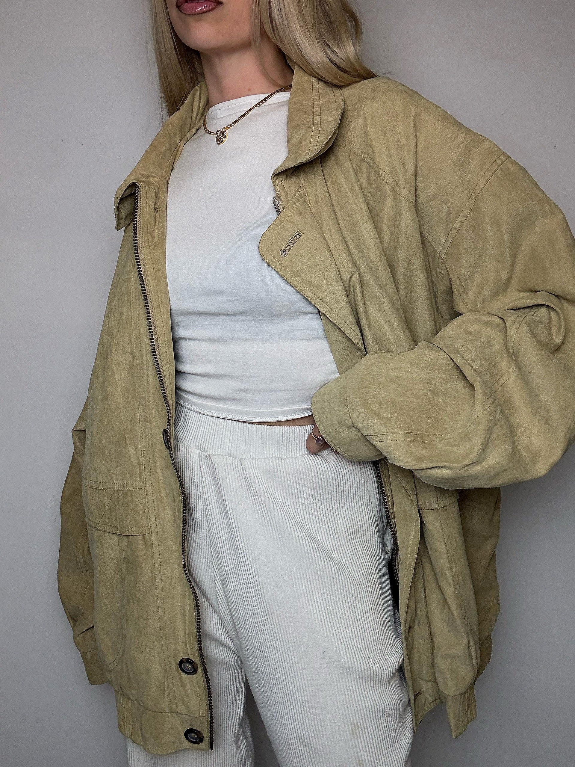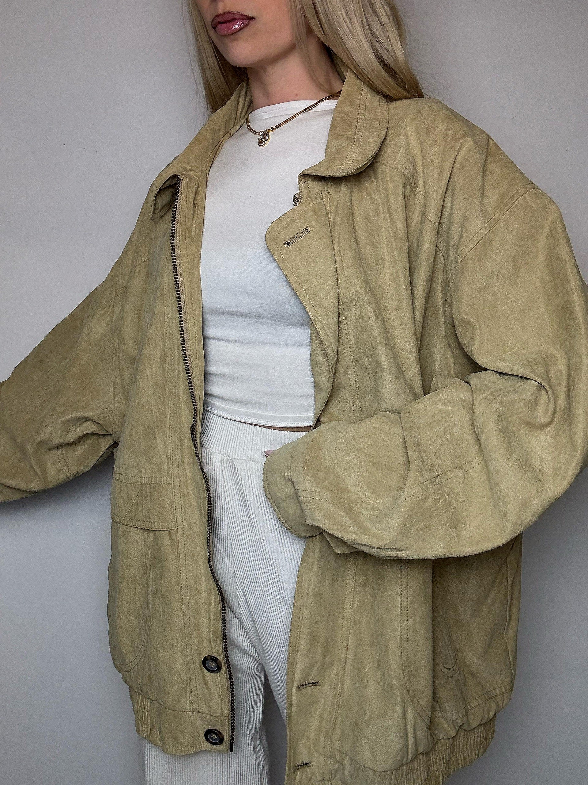 Cette veste matiere peau de peche est vraiment fluide et super jolie porter oversize !