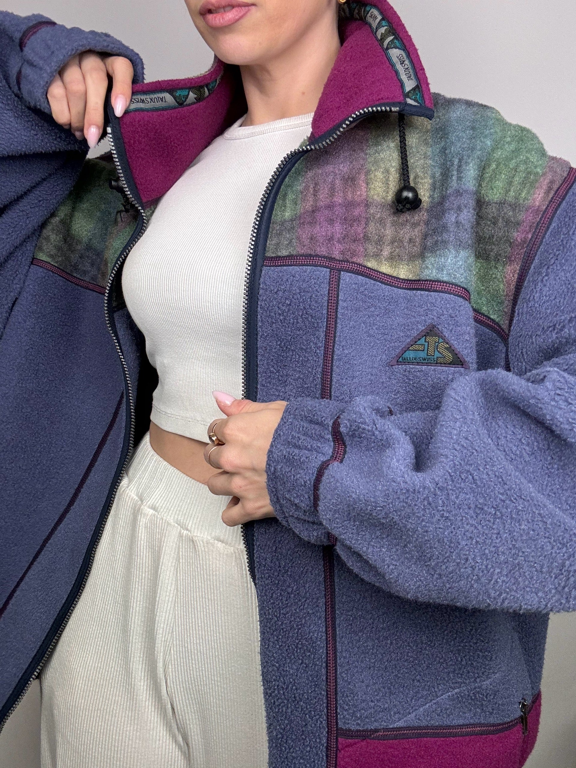 Veste polaire épaisse graphique violette XL vintage
