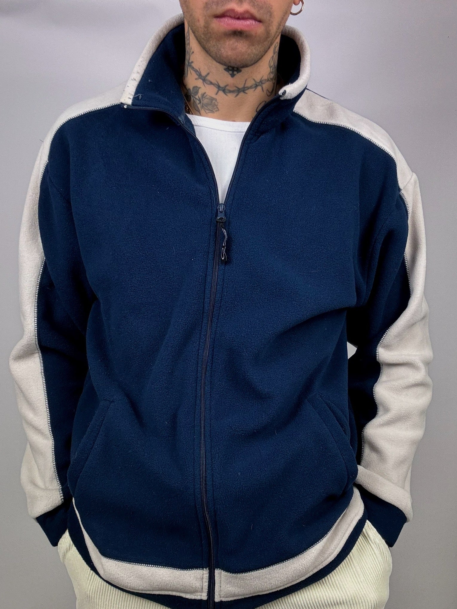 Veste polaire Marine et blanche L Vintage