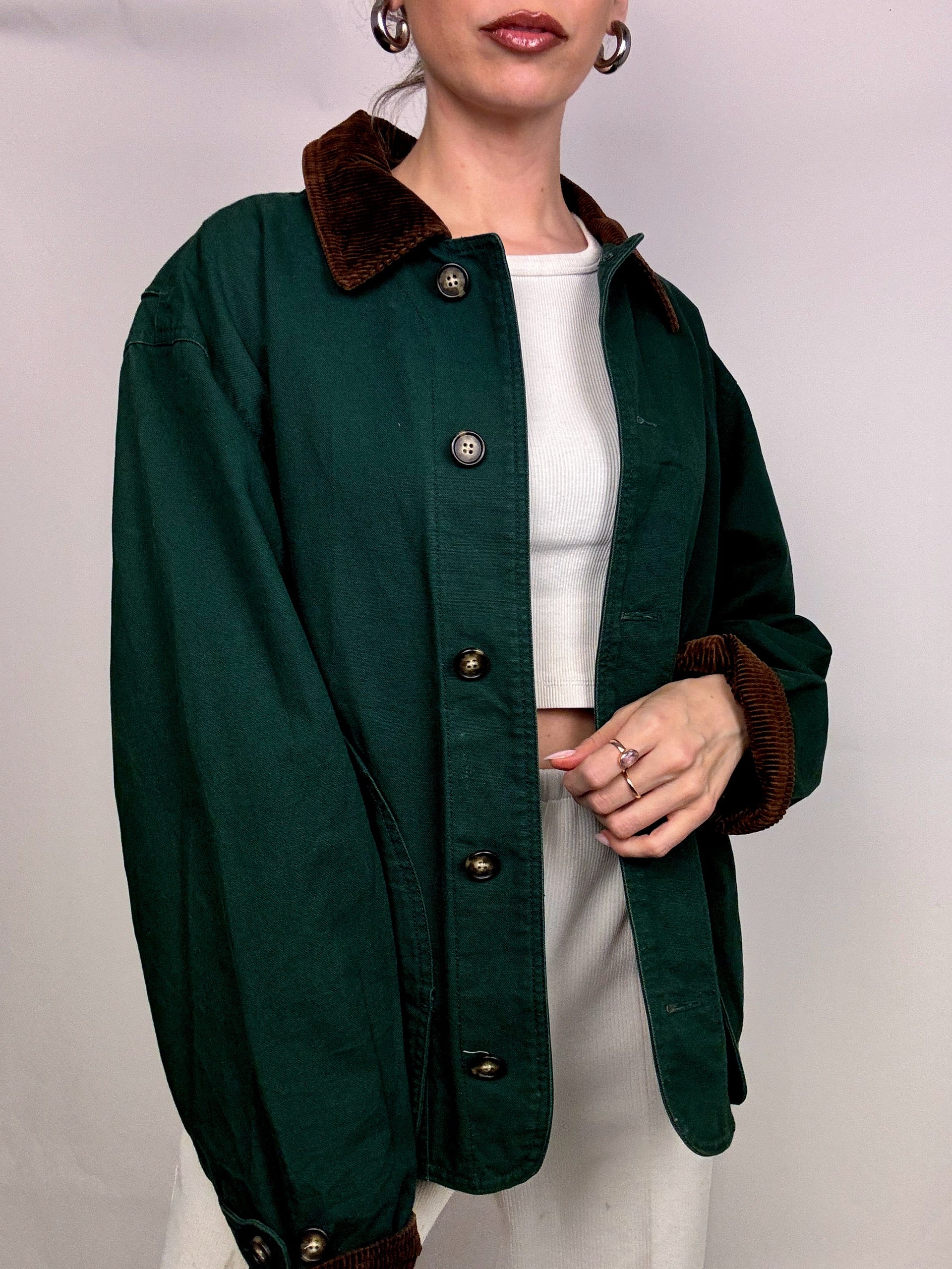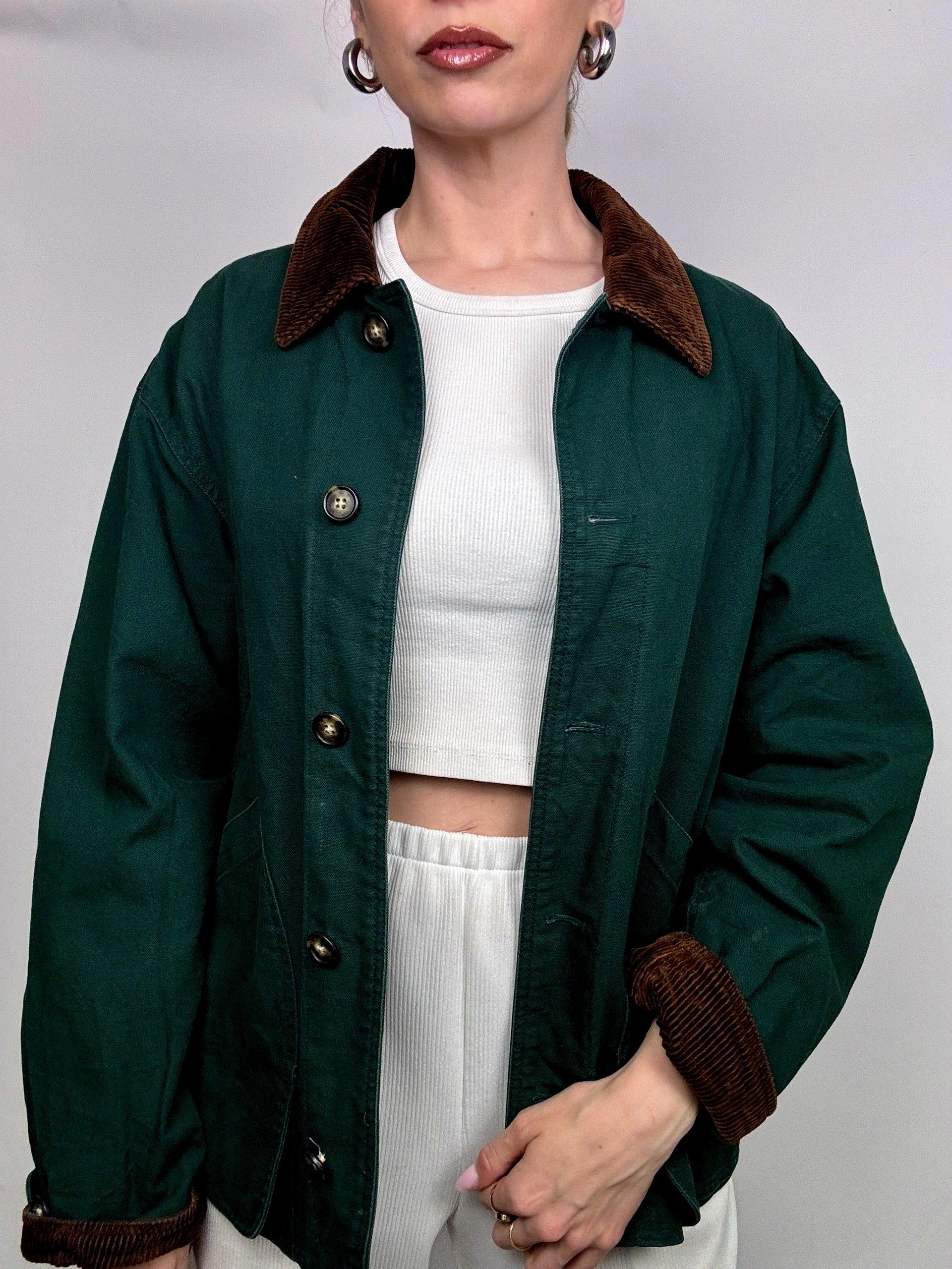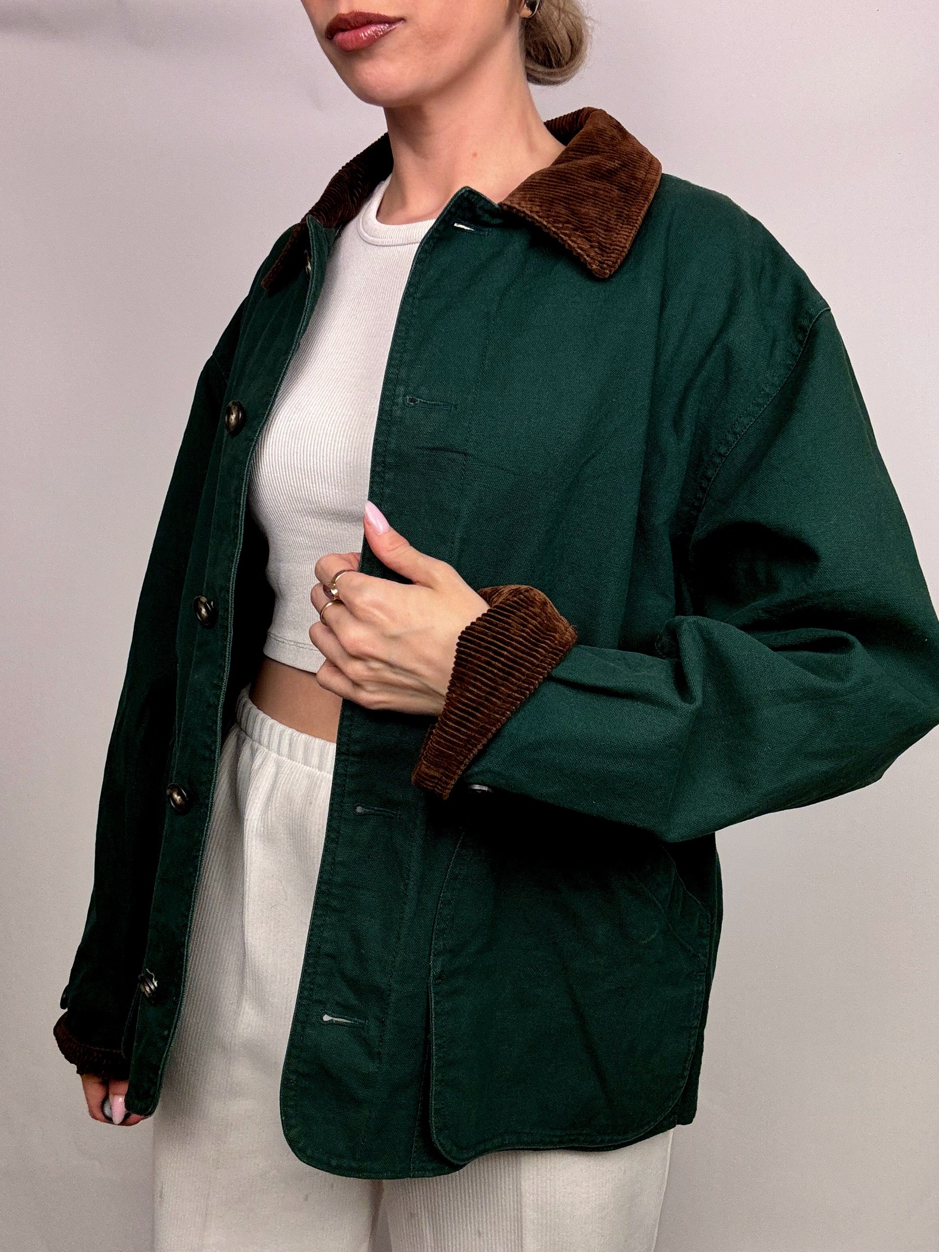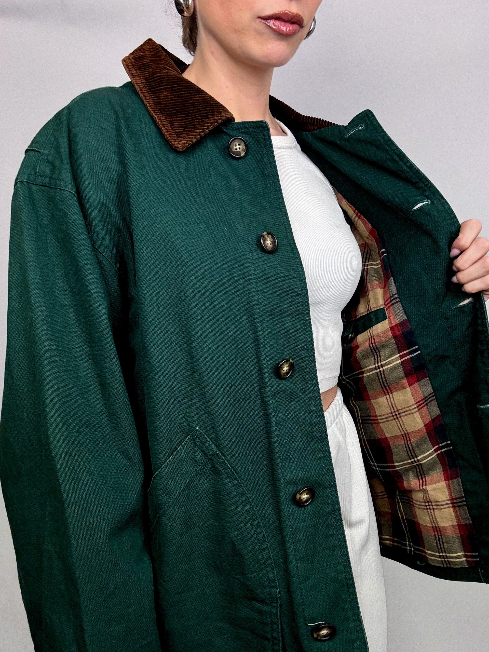 Veste style boxy LANDS END verte M vintage
