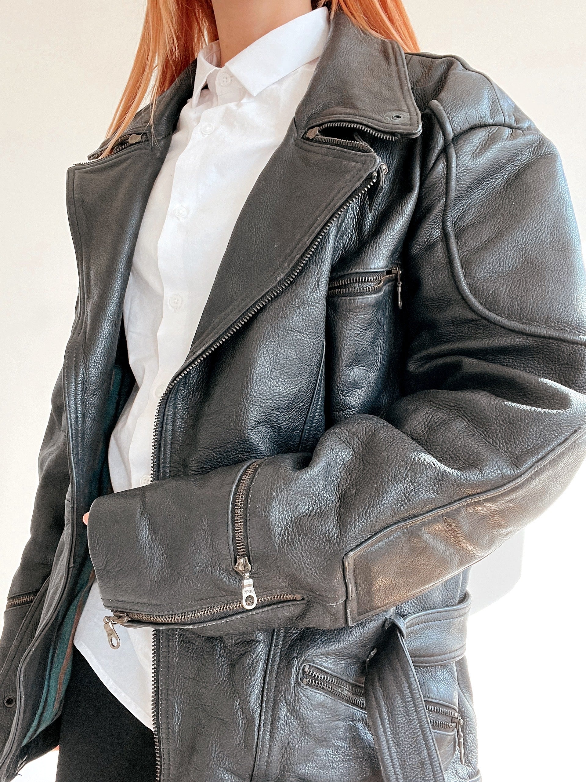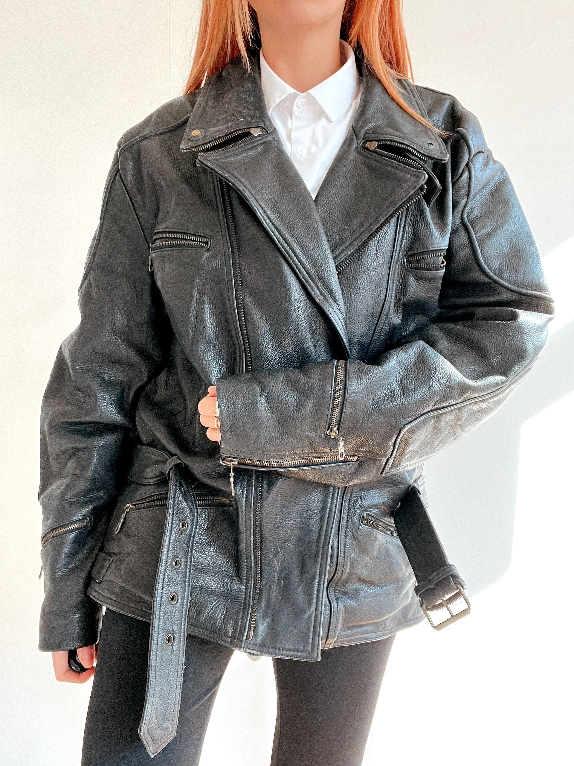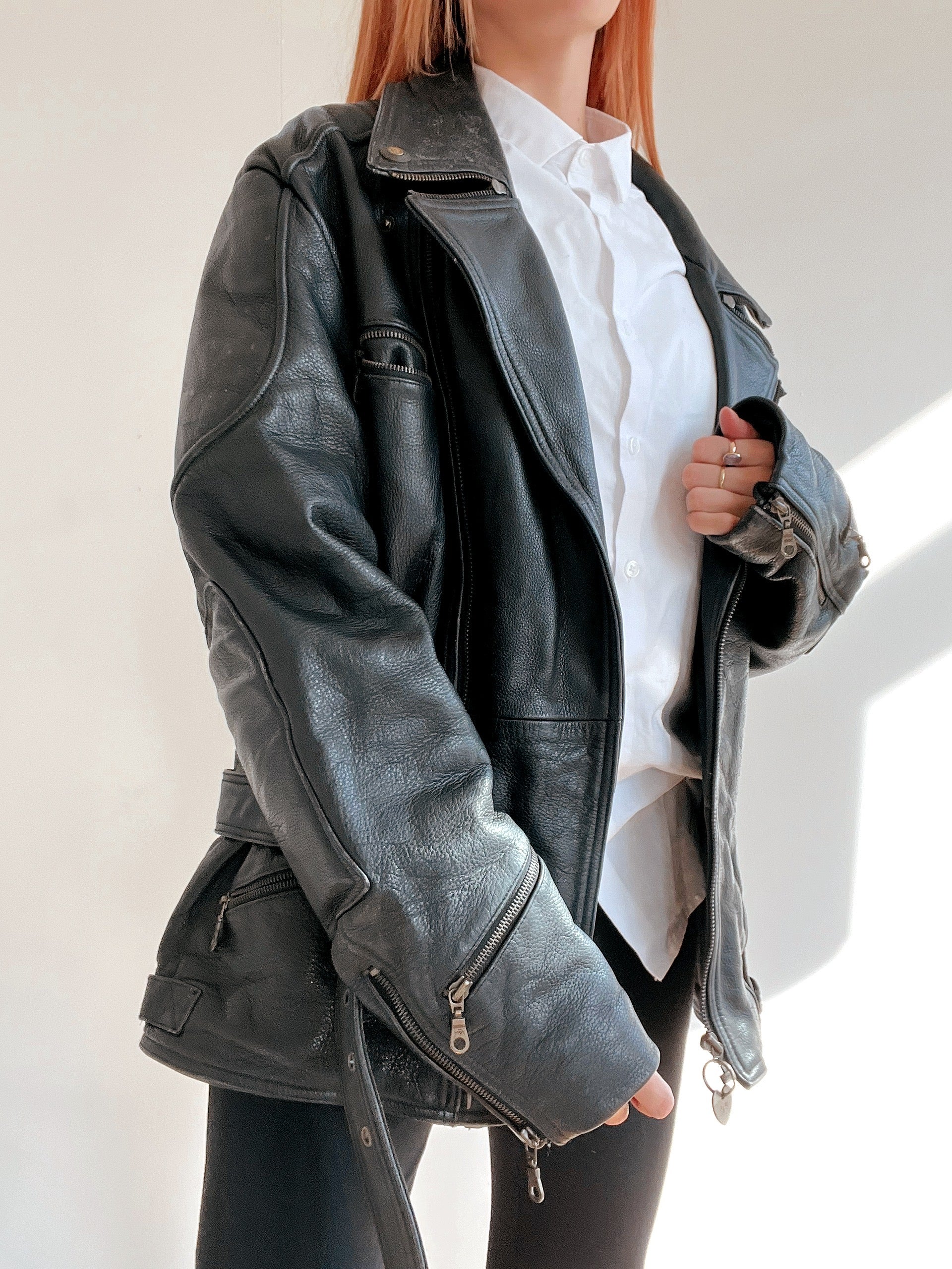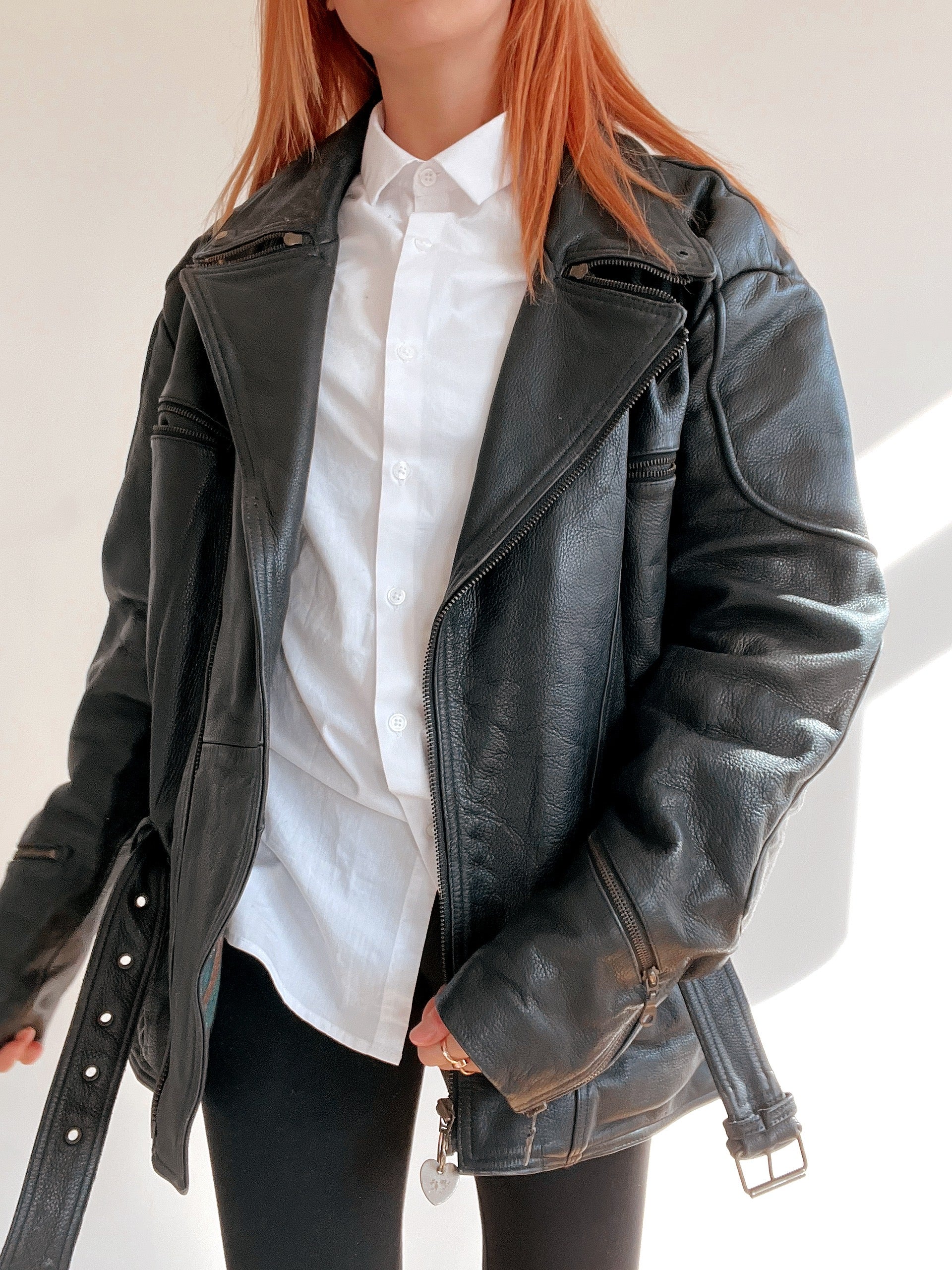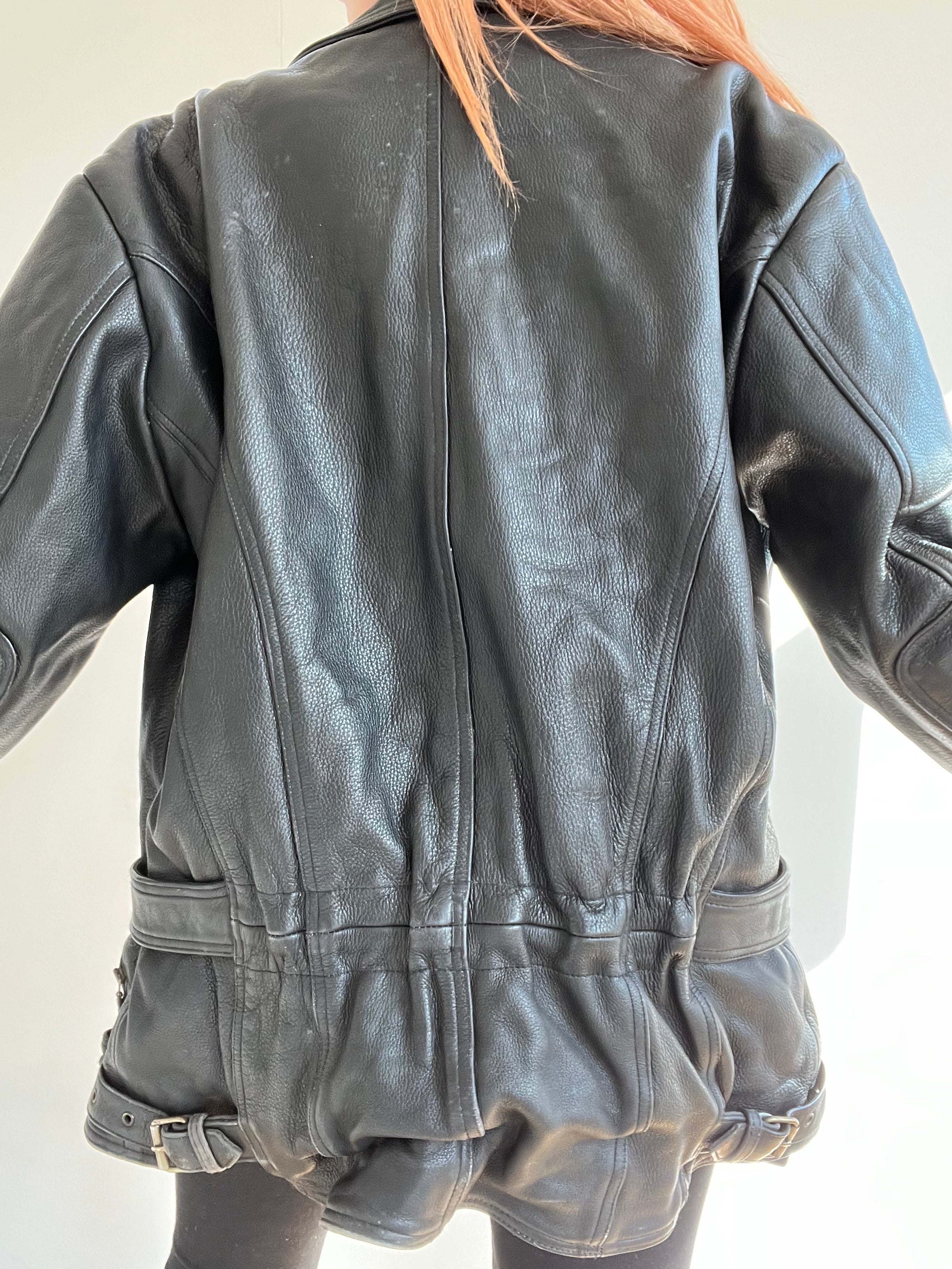 Veste vintage de moto noire en cuir XL