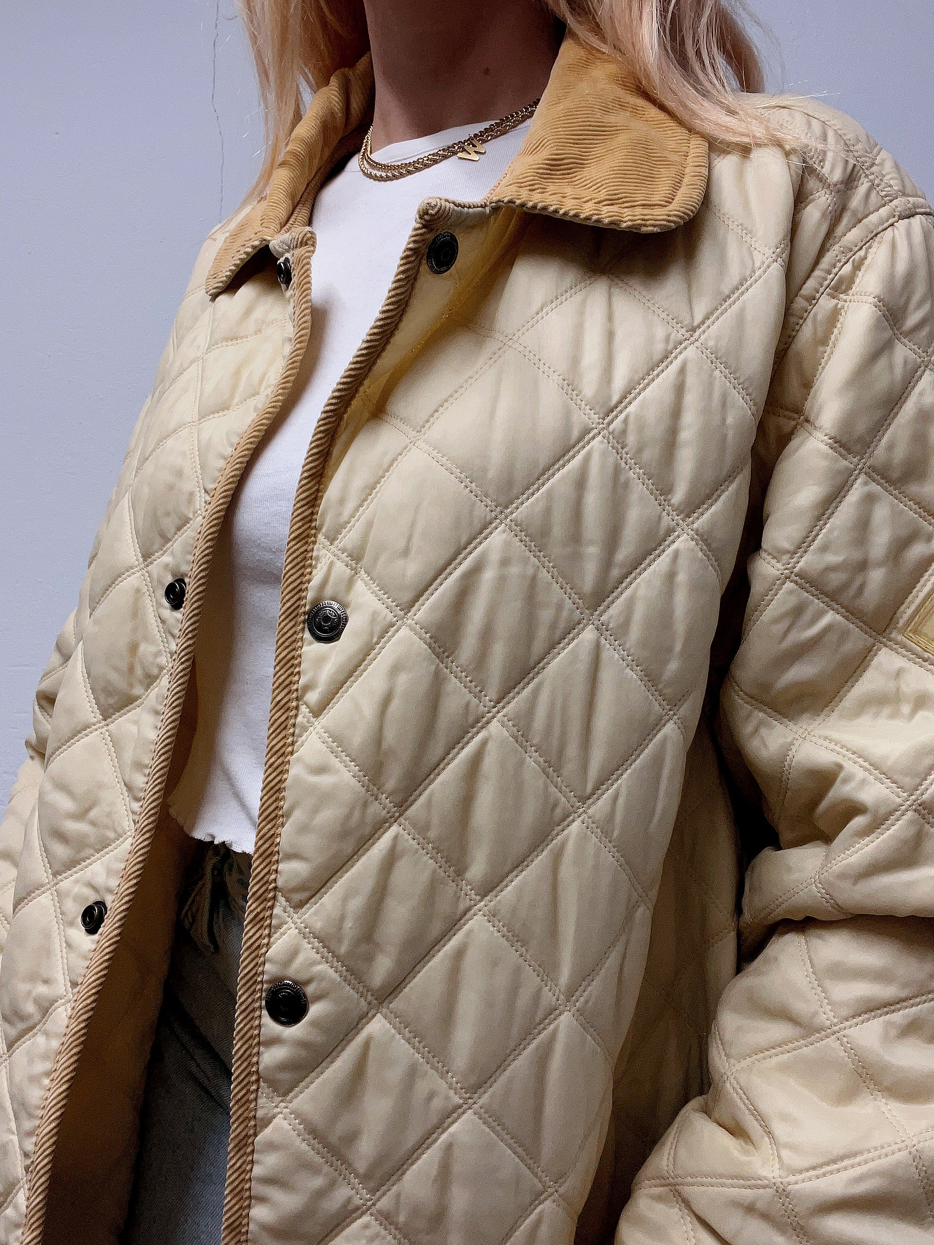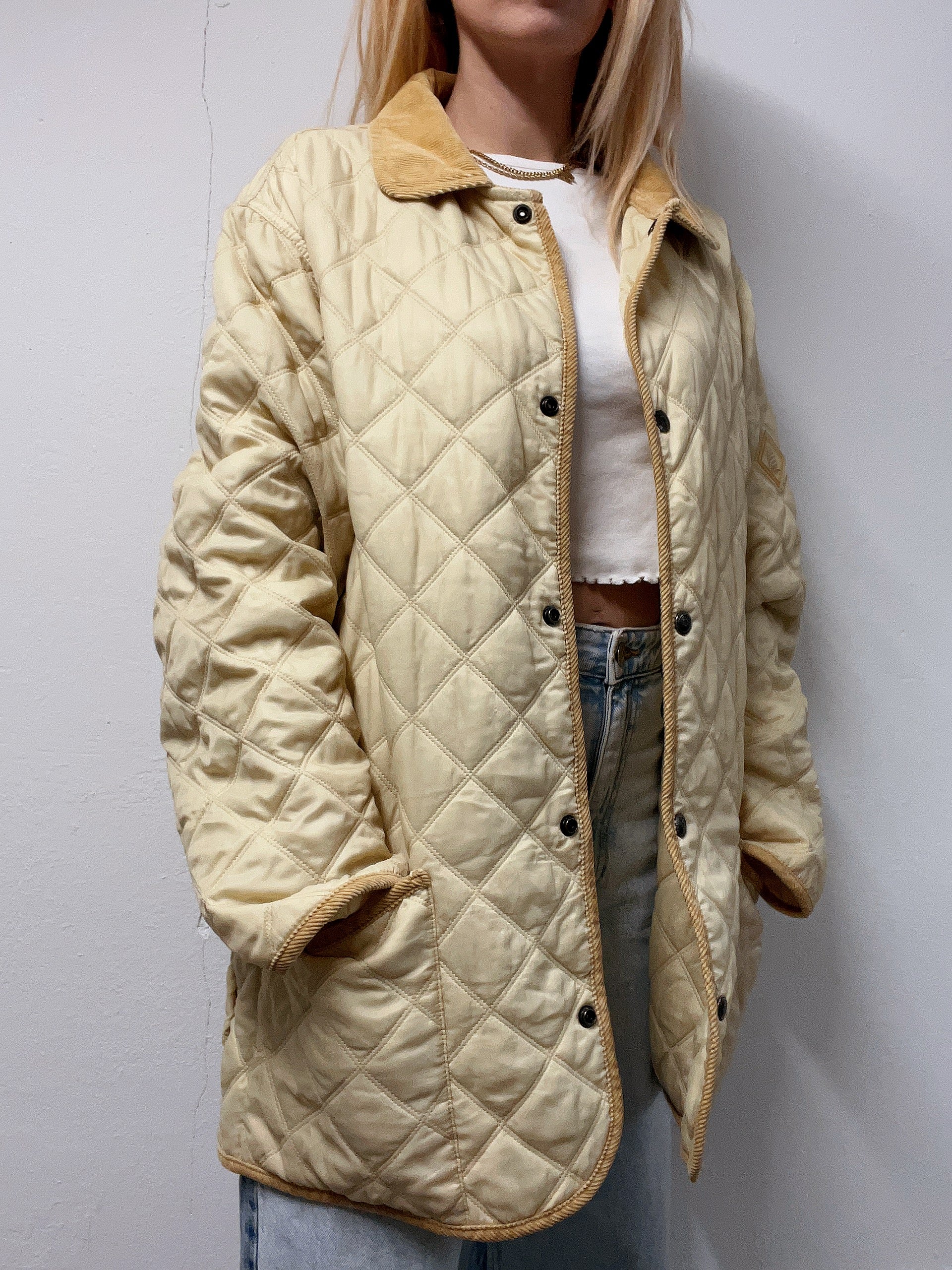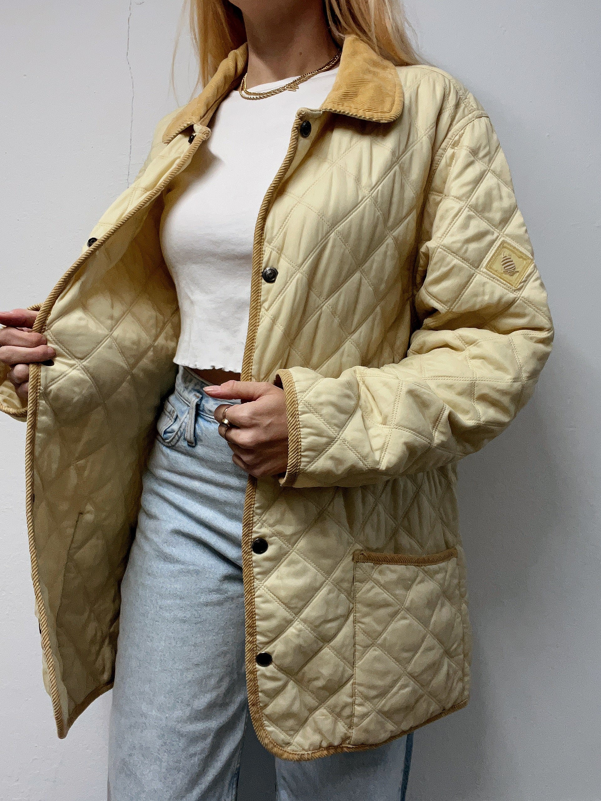 Veste vintage matelassé beige/jaune L