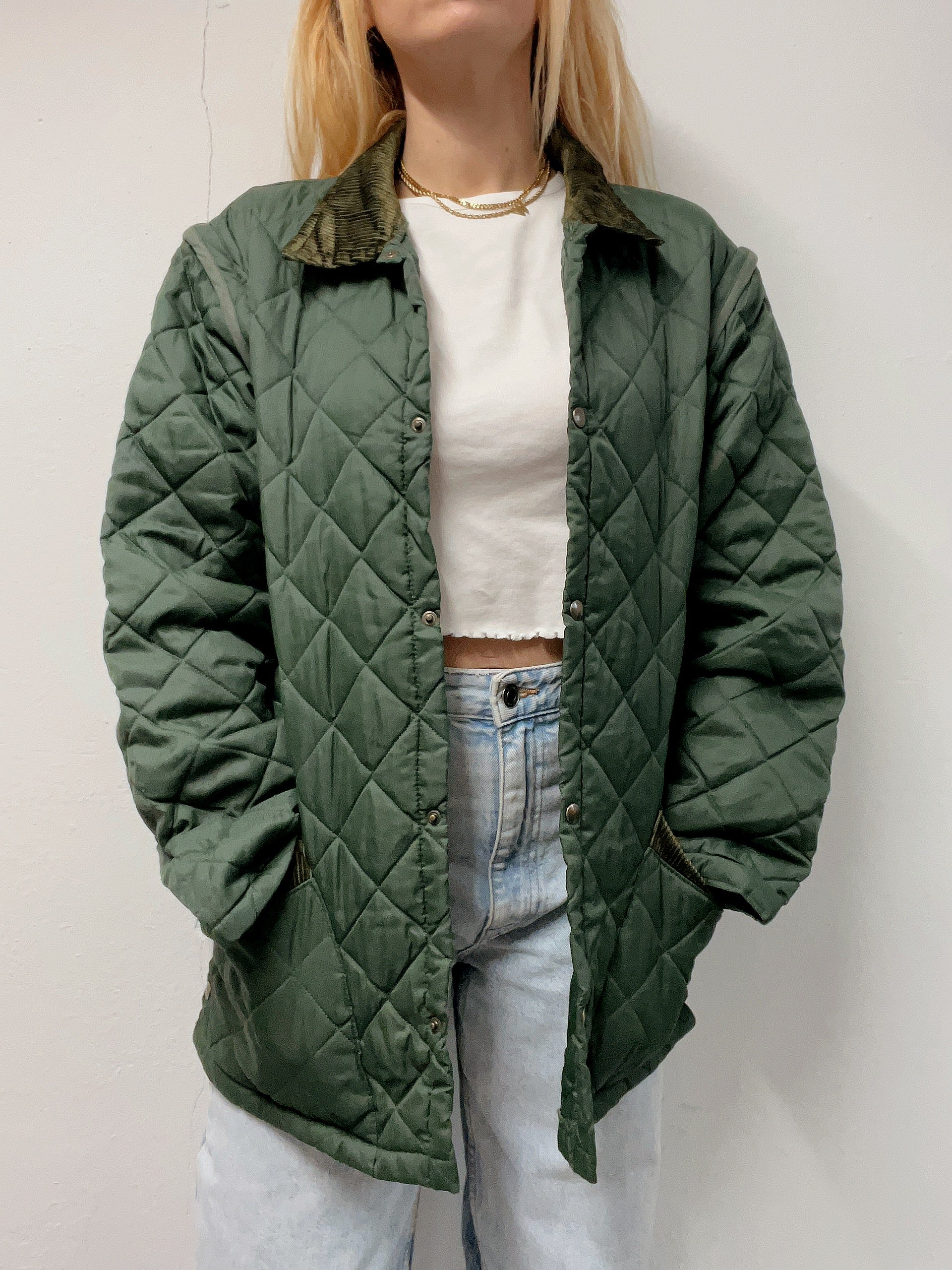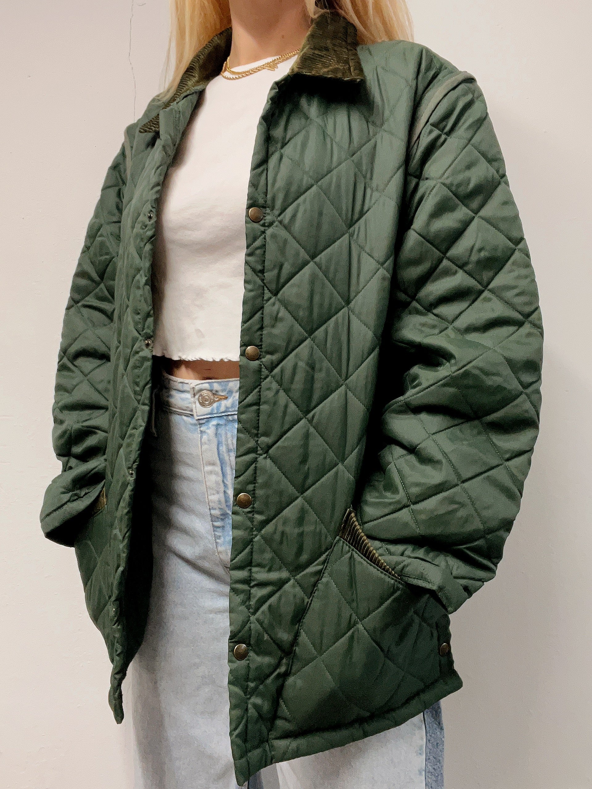 Veste vintage matelassé vert khaki M