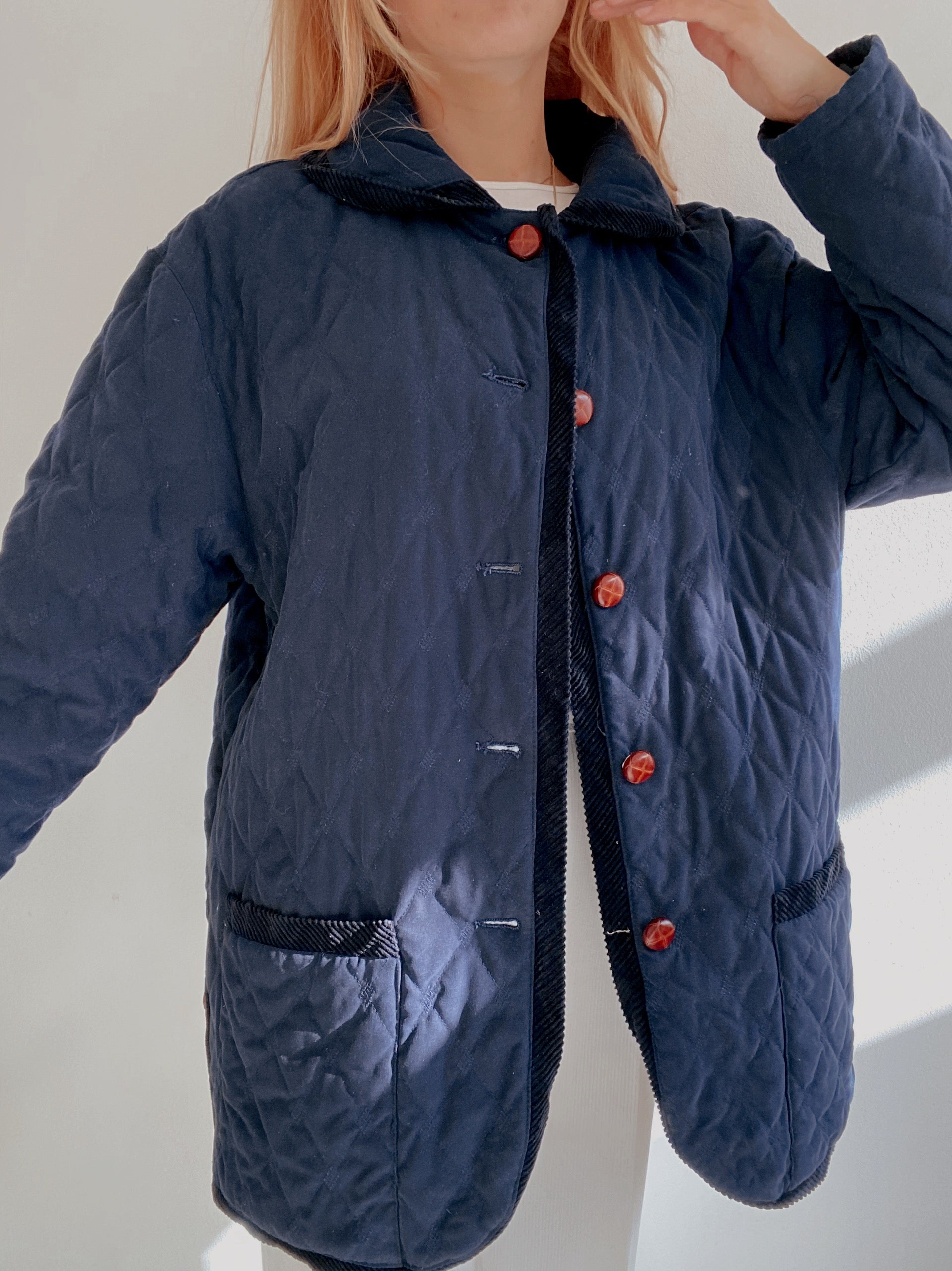 Veste vintage matelassée bleue foncée bouton bois M/L