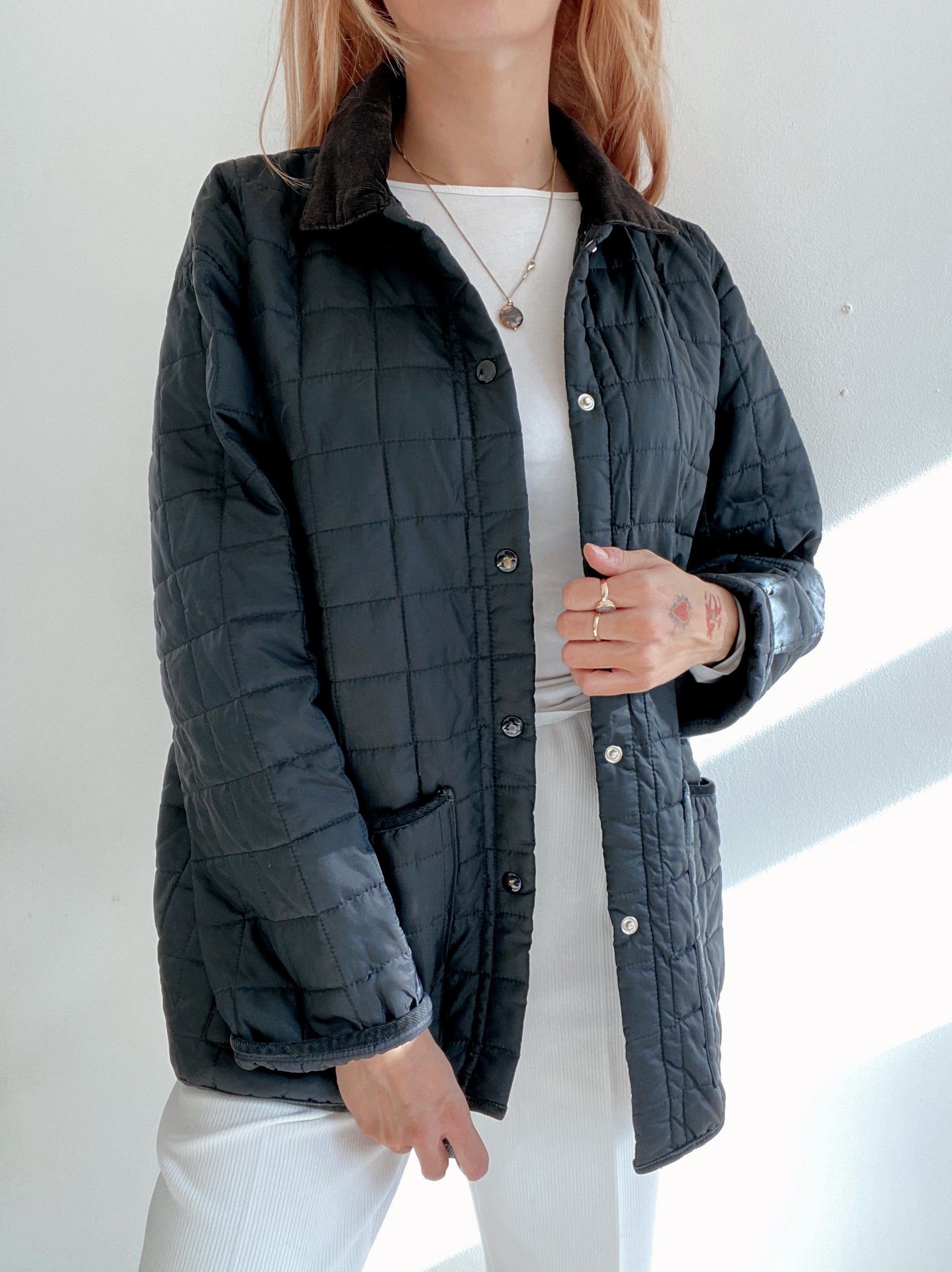 Veste vintage matelassée noire et brune L