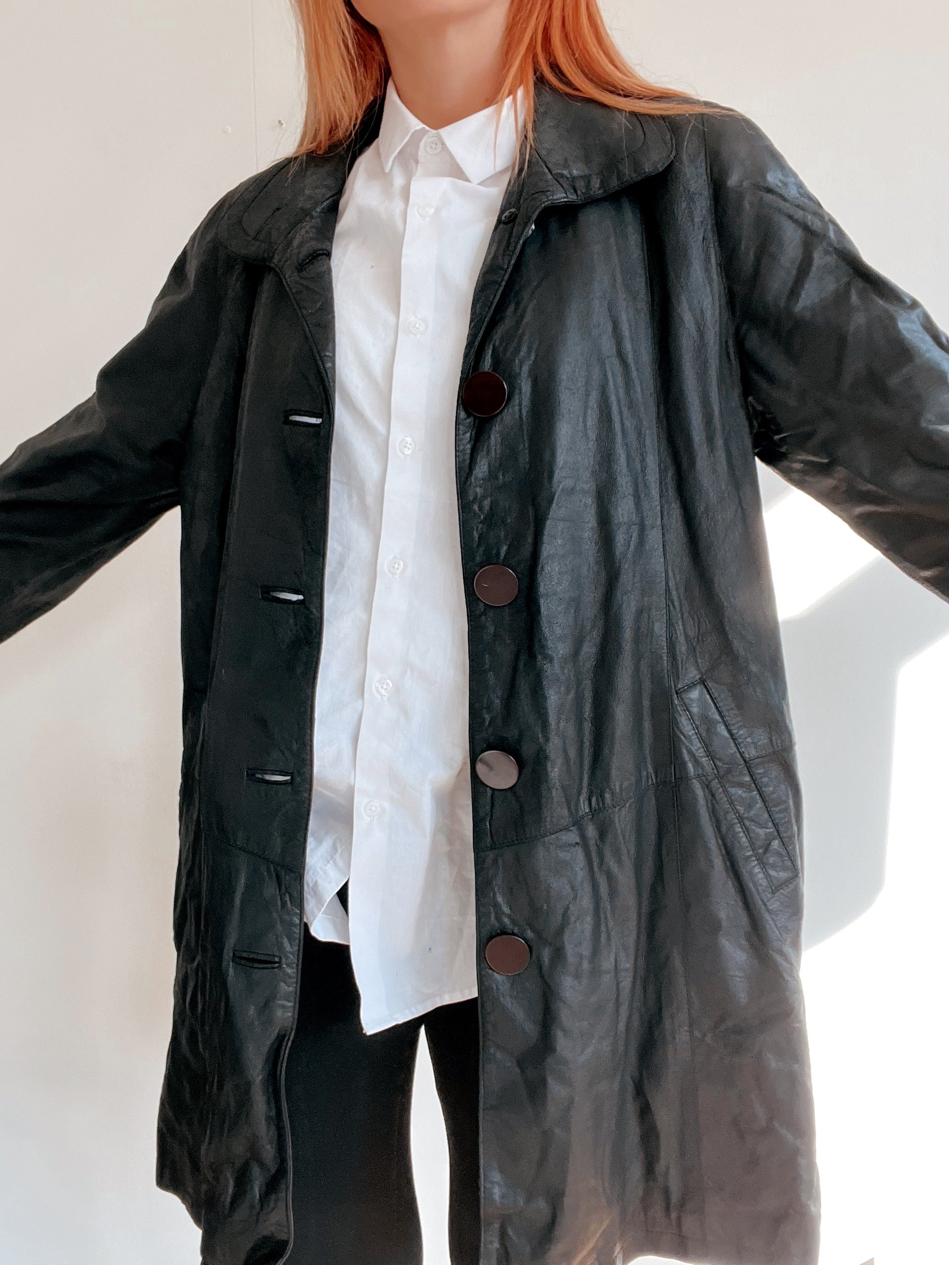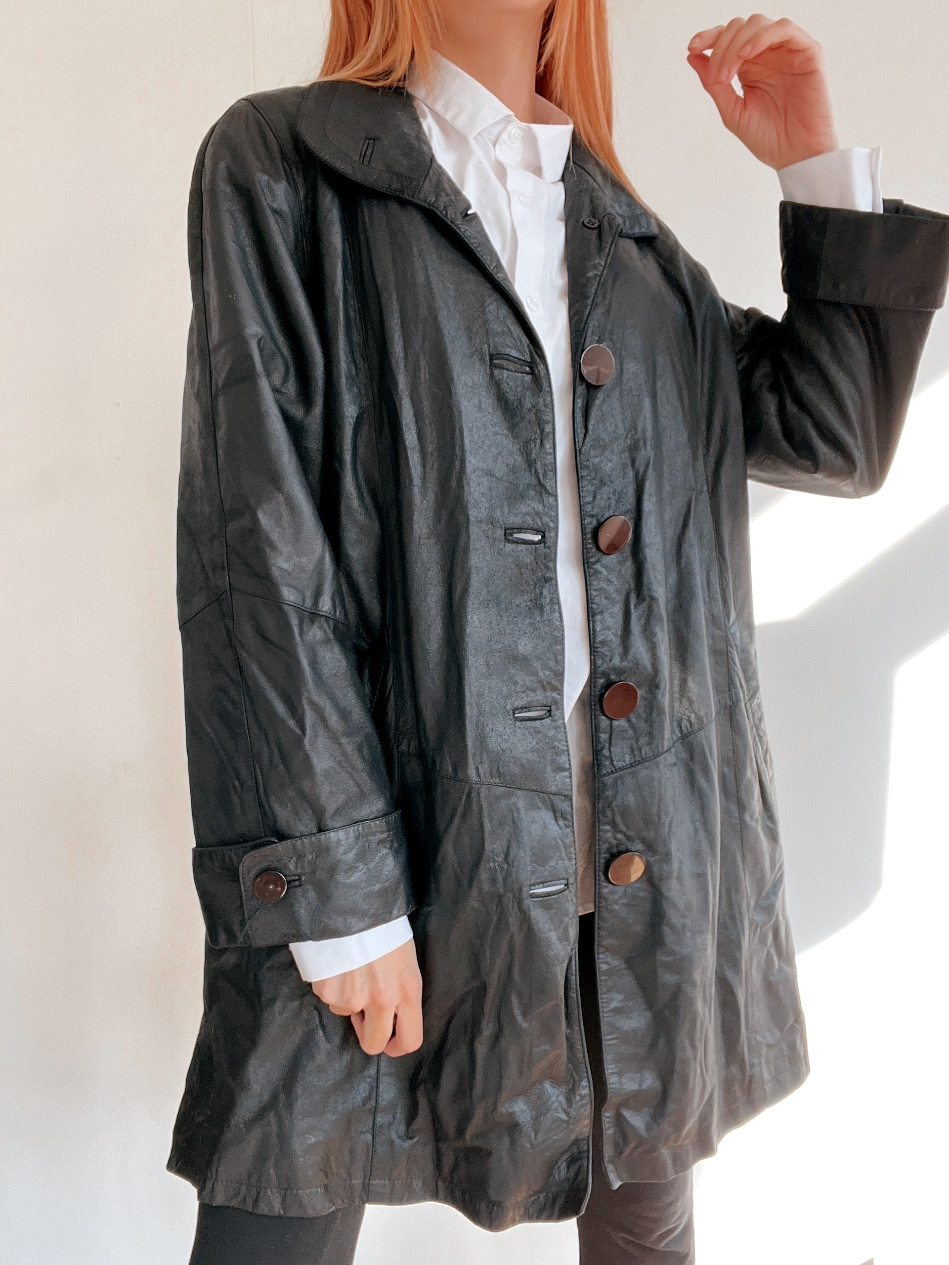Veste vintage noire en cuir souple L