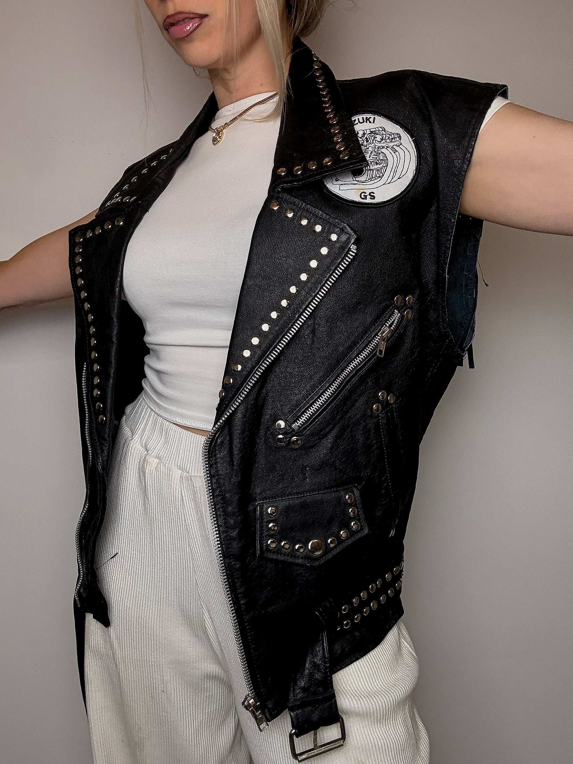 Veston sans manche en cuir L vintage