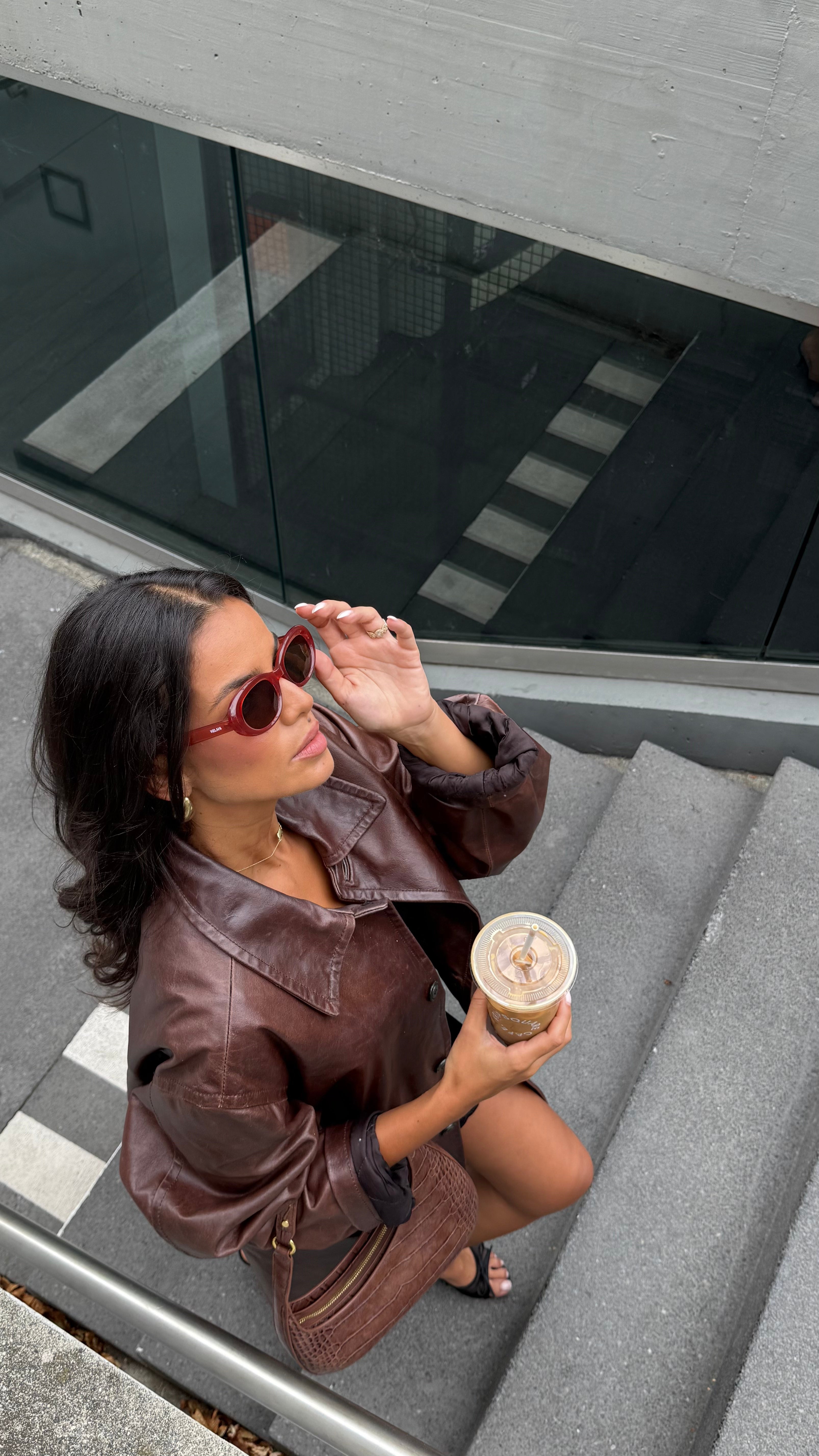 Lunettes recyclées papillons couleur rouge, verres bruns